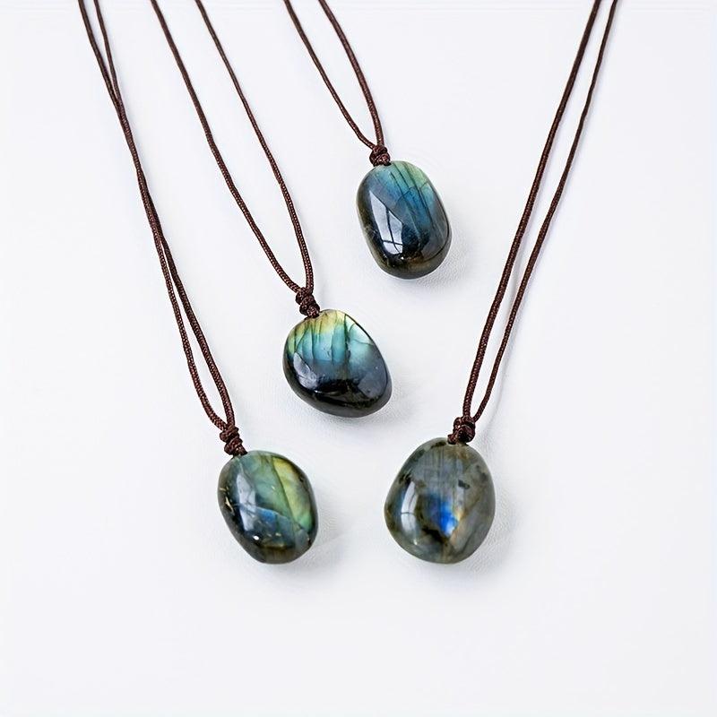 This natural crystal pendant necklace features a Labradorite Raw Stone Moonstone design, making it a perfect decorative accessory for holiday parties or a great gift for men.