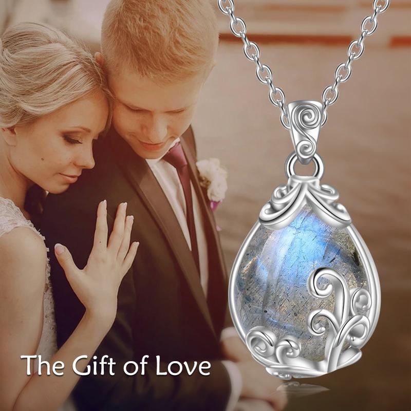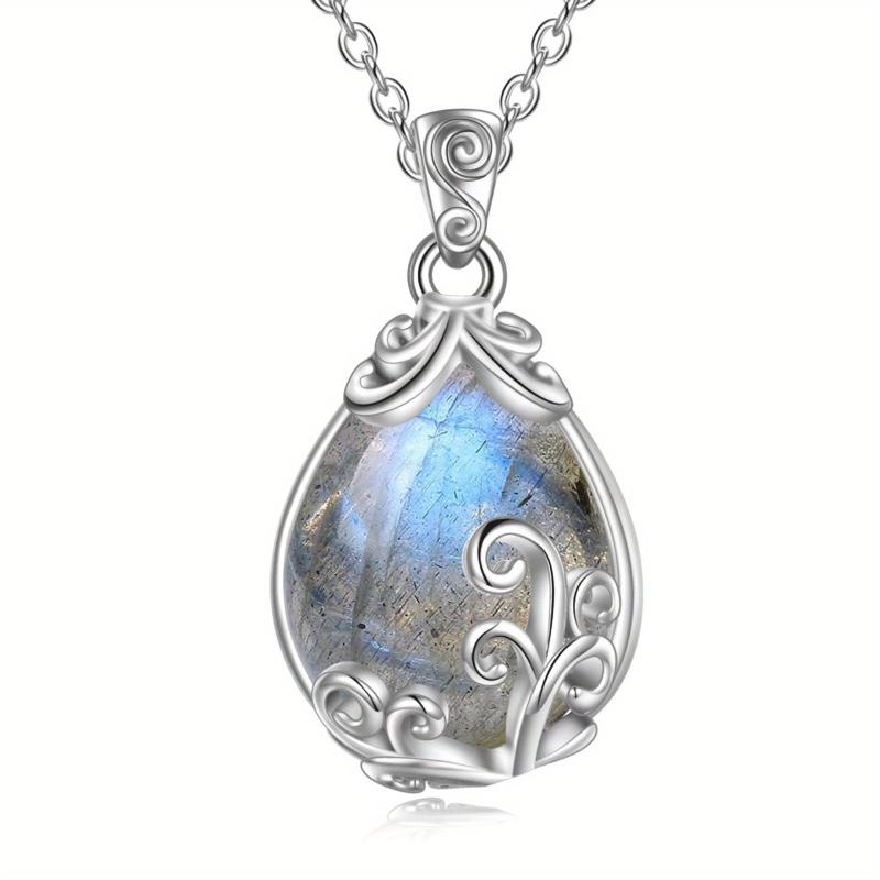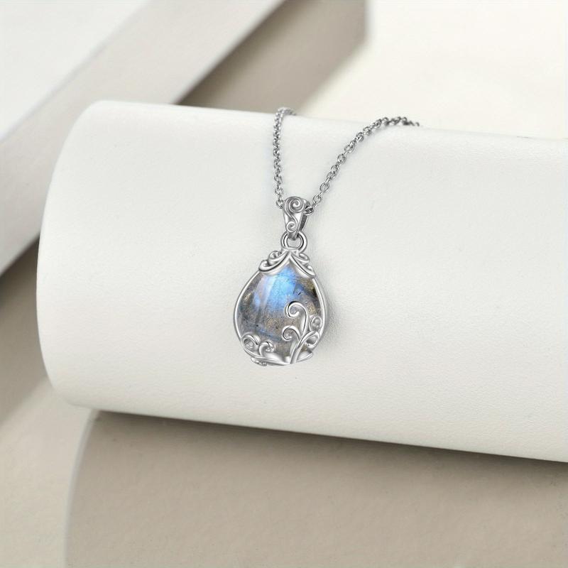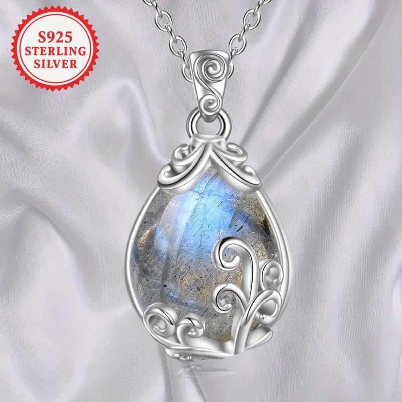 Elegant sterling silver necklace adorned with a labradorite gemstone teardrop pendant.