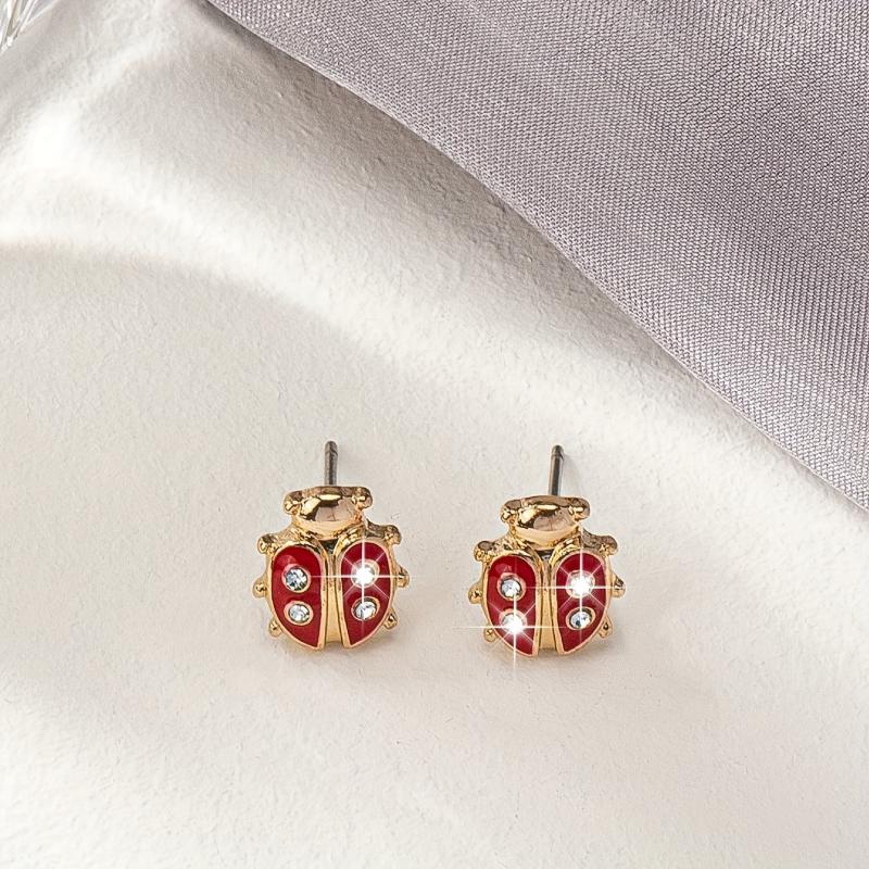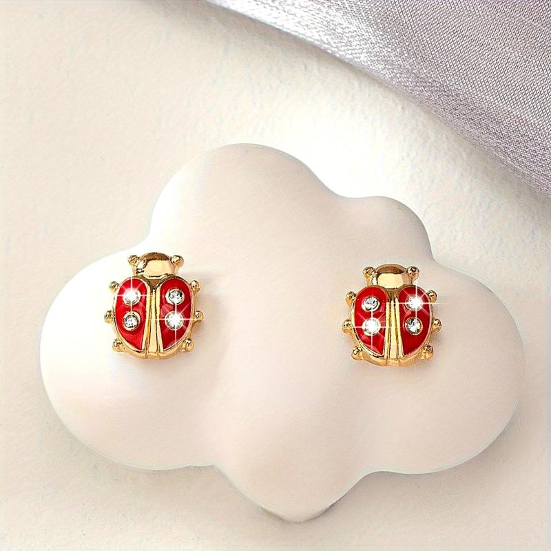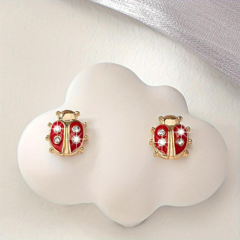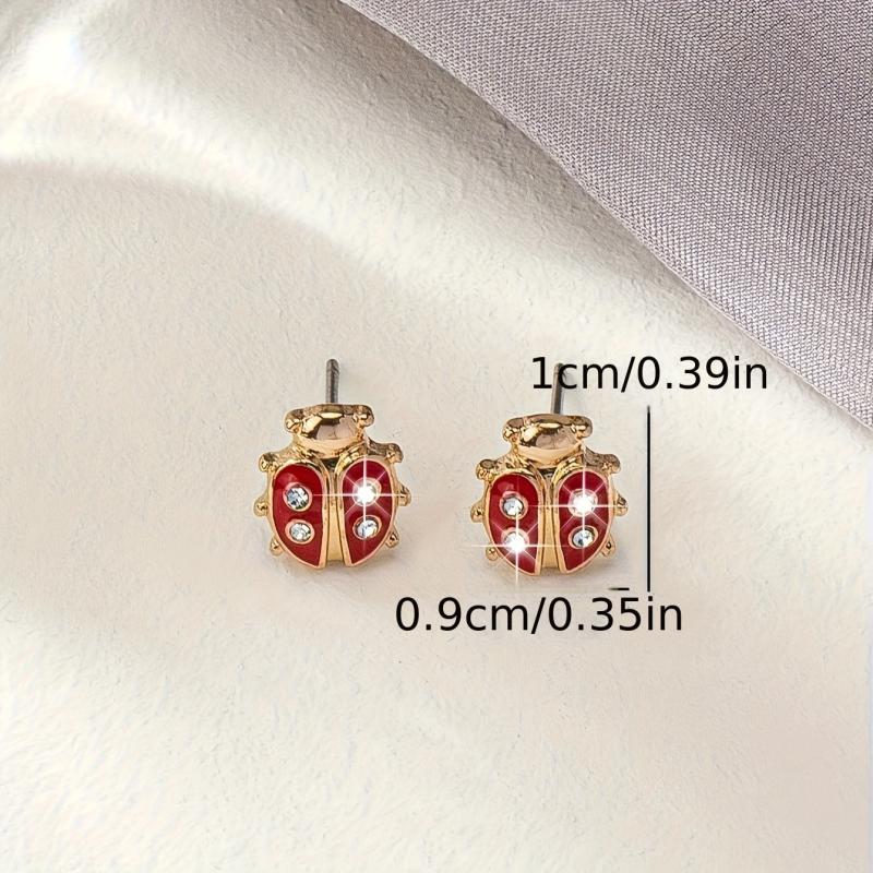 Adorn your ears with these cute ladybug shaped stud earrings featuring tiny zirconia inlays. Perfect for summer or daily wear, these zinc alloy earrings are a charming addition to your jewelry collection.