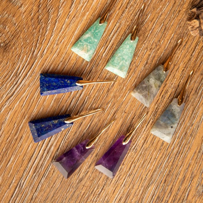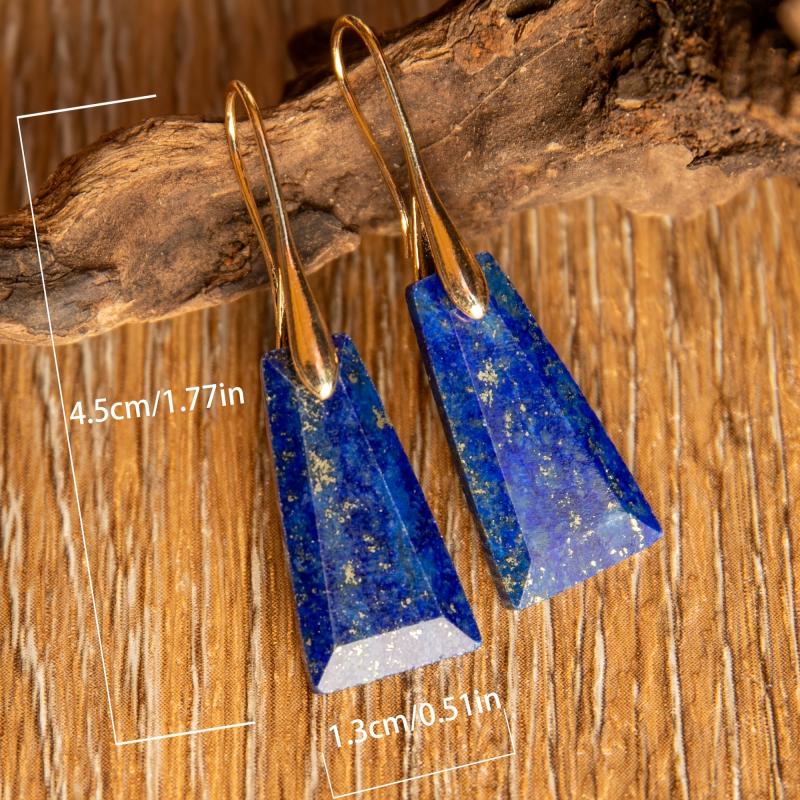 Vintage style lapis lazuli pendant earrings featuring amethyst, green aventurine, and labradorite. Perfect for daily wear and ideal as a gift for friends.