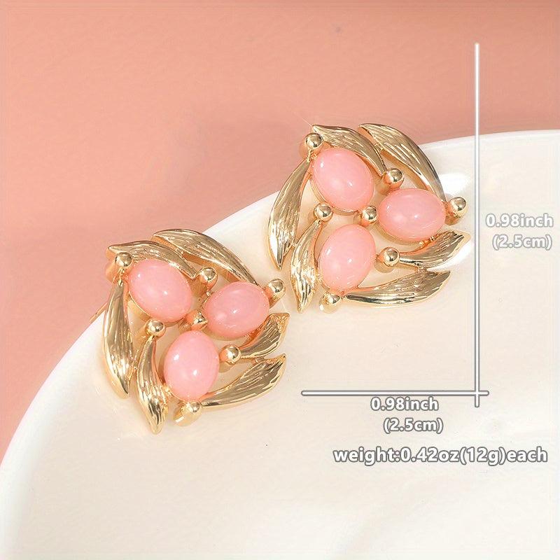 These elegant stud earrings feature intricate leaf design with pink gemstones. Perfect for weddings, Mother's Day, and year-round jewelry.