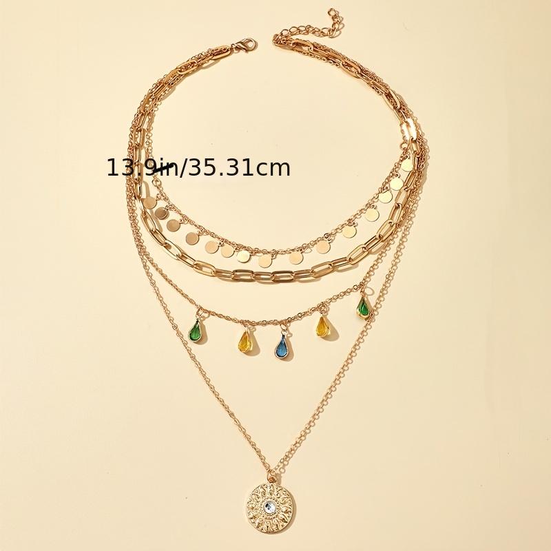 Elevate your style with this stunning layered chain necklace featuring a round shape pendant. Adjustable length to suit any outfit or occasion.