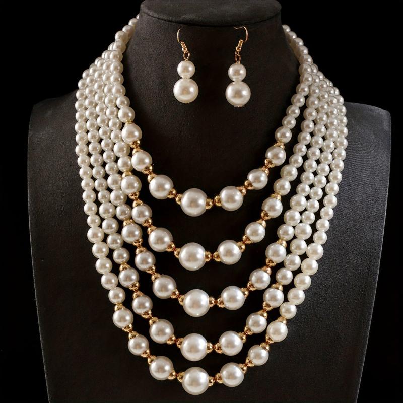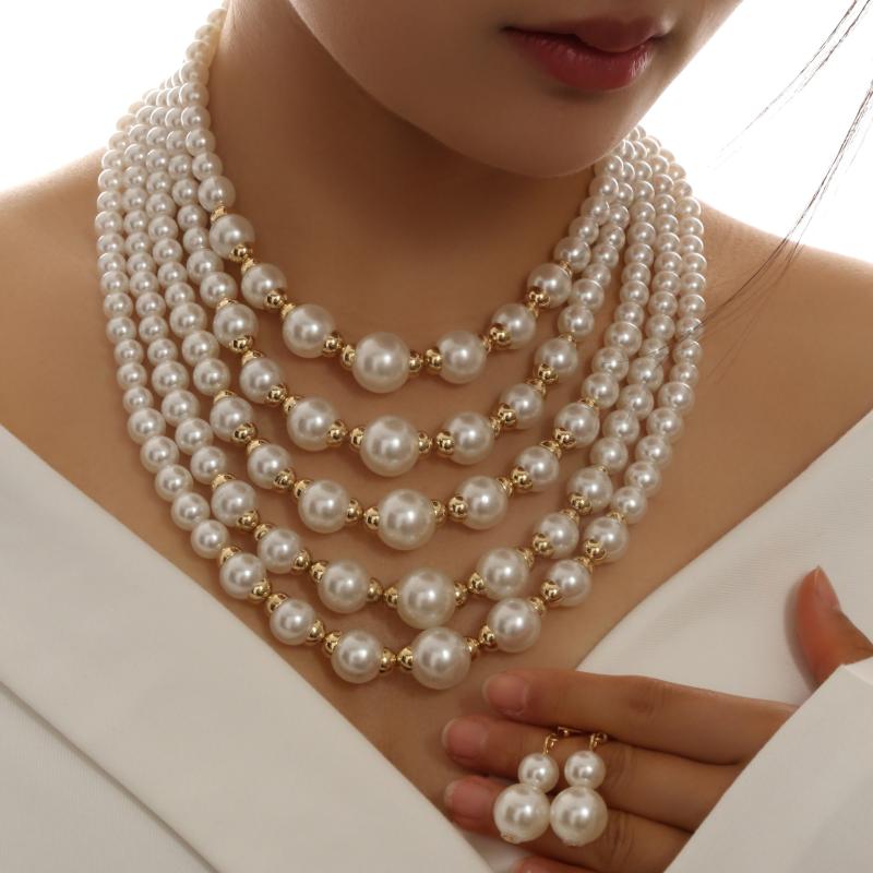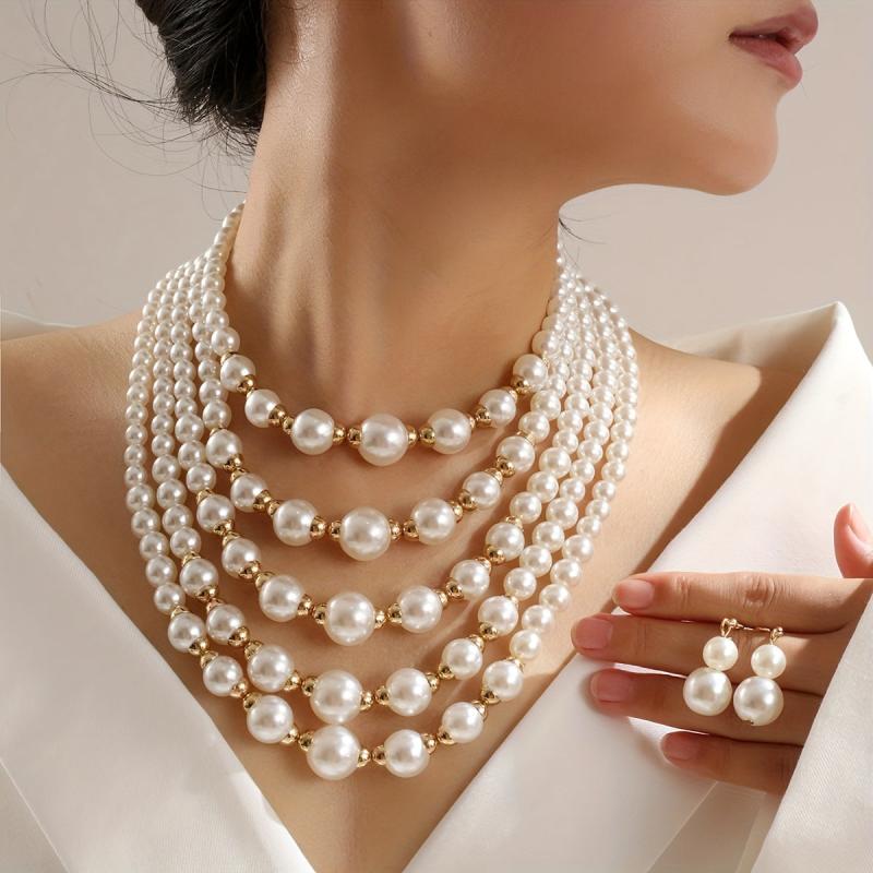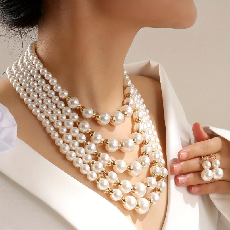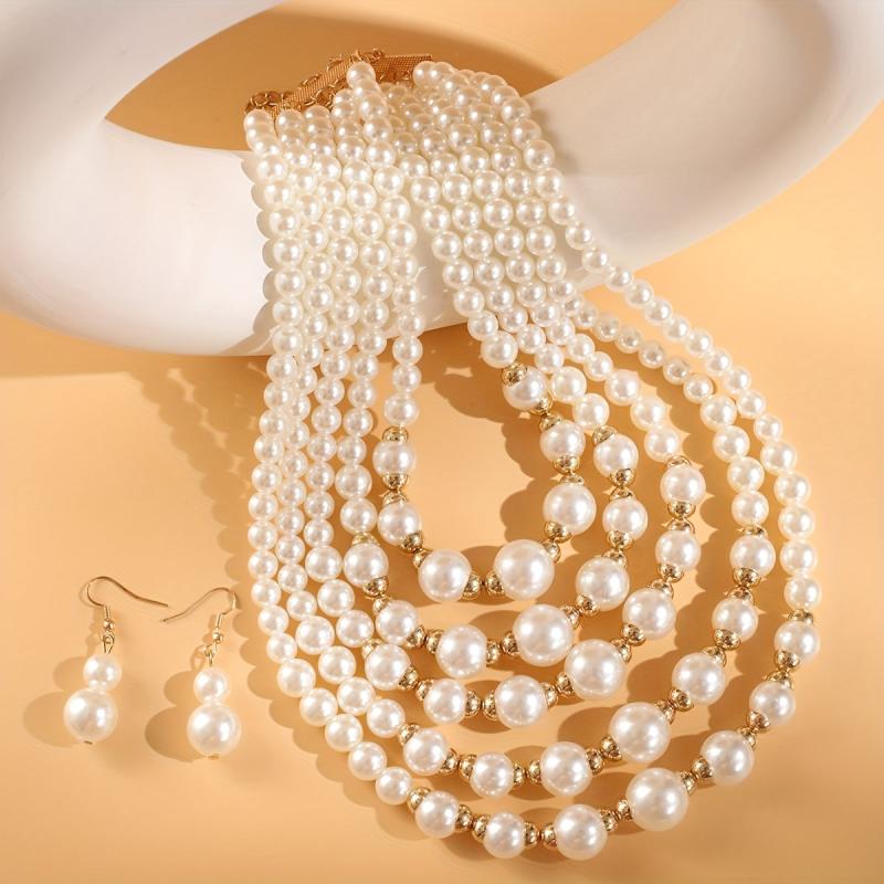 Enhance your look with this elegant faux pearl beaded necklace and earrings set. Perfect for gifting or wearing to banquets, this jewelry is versatile for all seasons.