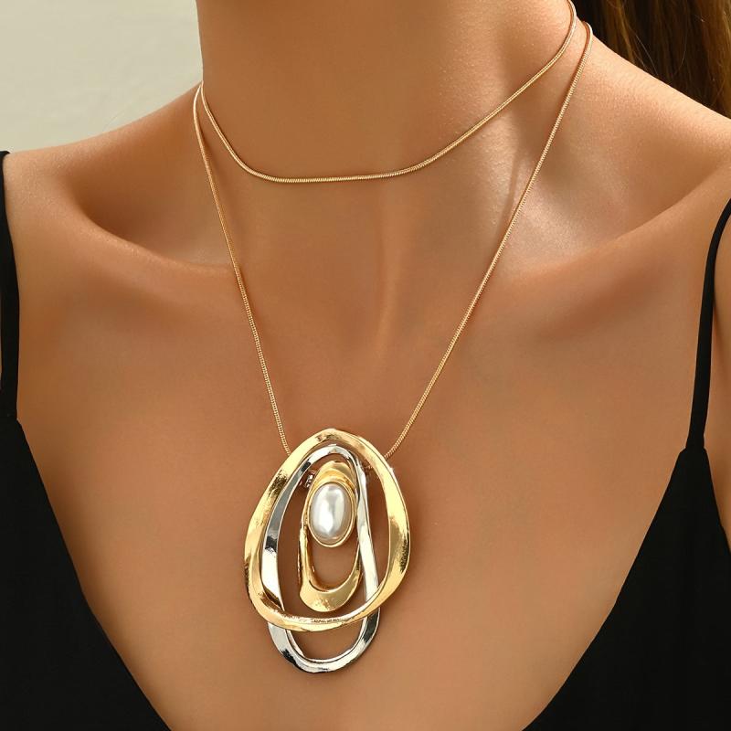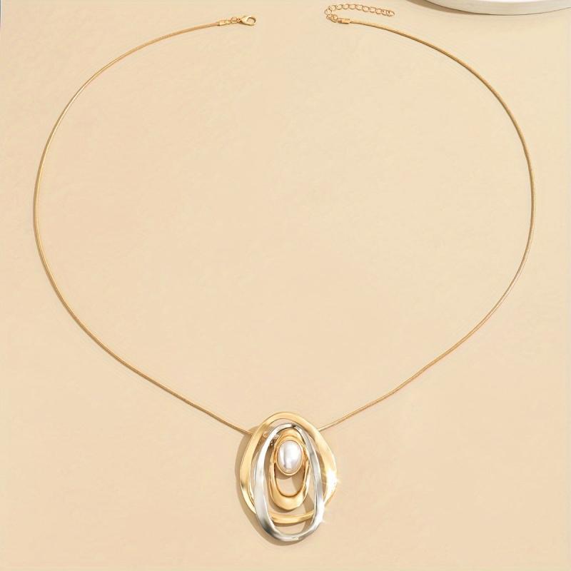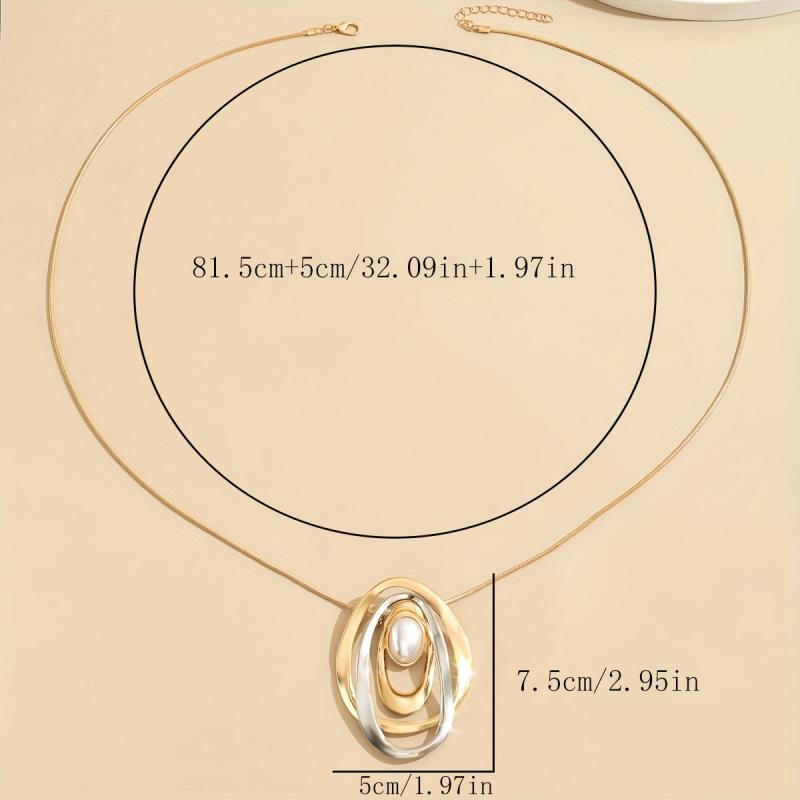 This stylish necklace features a geometric design with acrylic pearl accents. It is perfect for daily wear and adds a touch of elegance to any outfit.