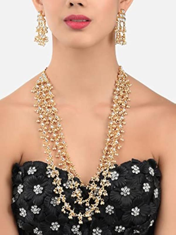 Elegant and stylish layered long necklace set featuring kundan and dangling details. Perfect for special occasions or daily wear.