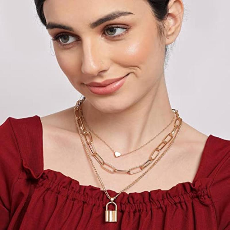 Elegant and stylish set of 2 layered necklaces that are perfect for adding a touch of glamour to your outfit.
