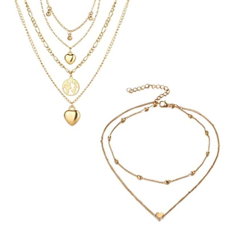 Elevate your style with this set of two gold-plated layered necklaces. Perfect for layering or wearing separately, these necklaces add a touch of elegance to any outfit.