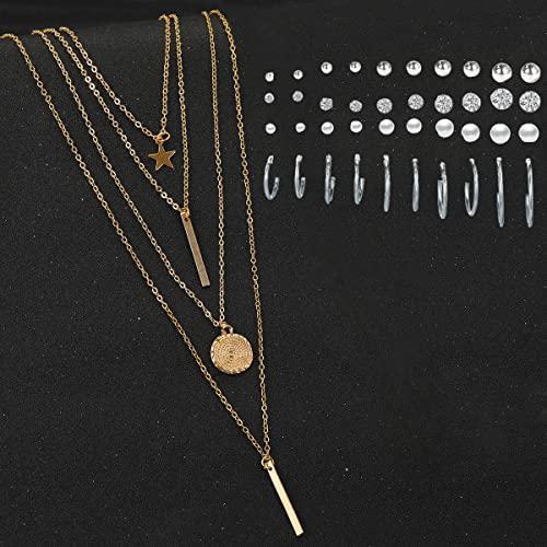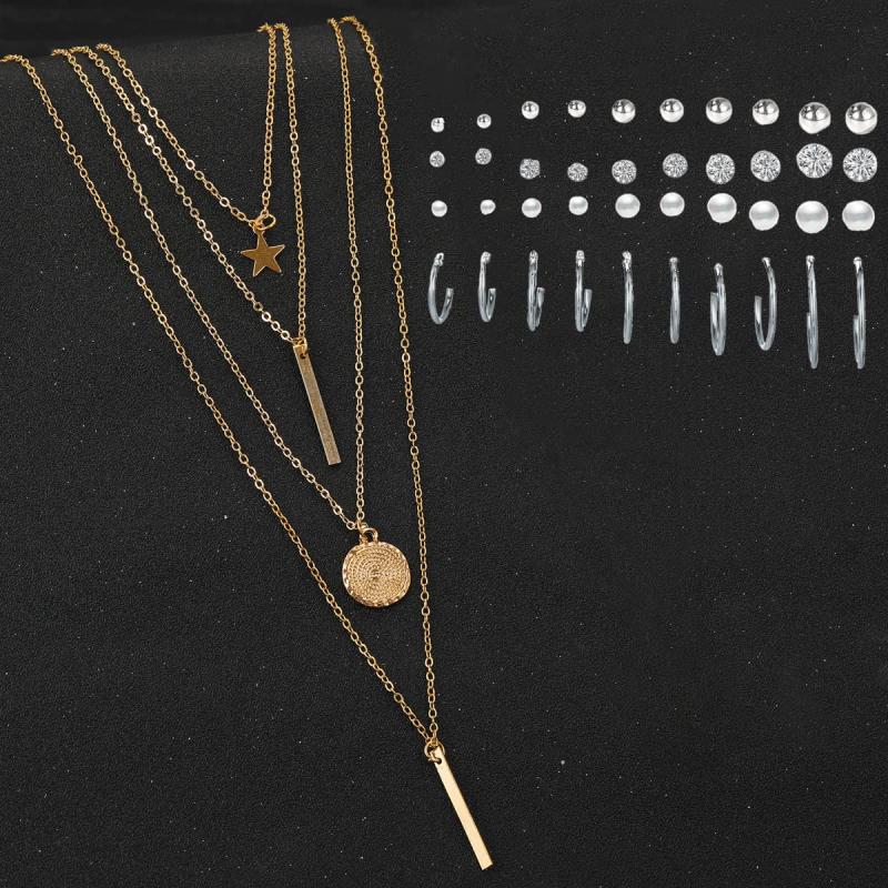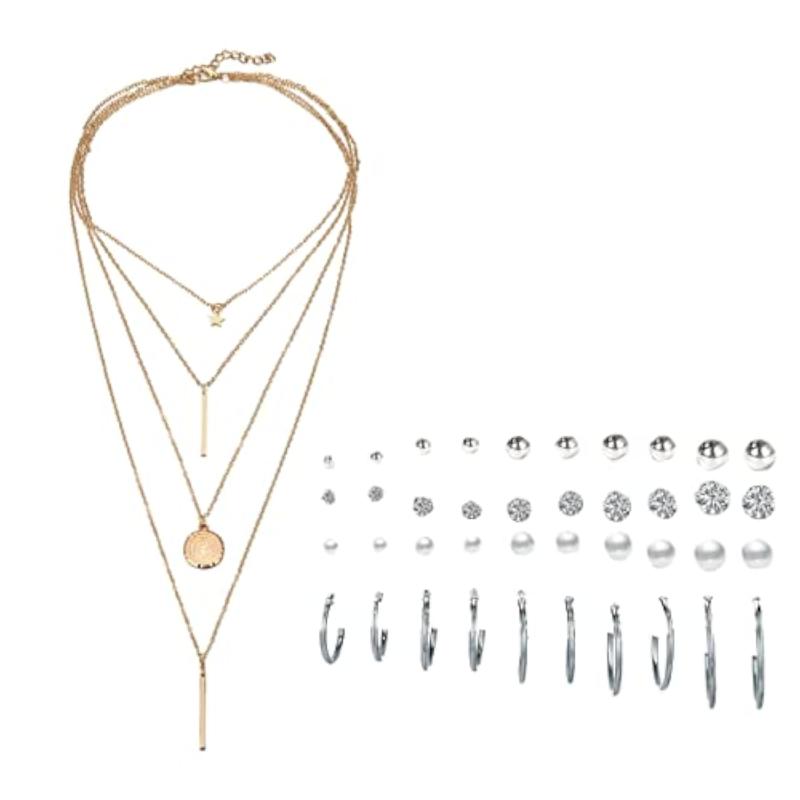Elevate your style with this combo featuring a plated layered necklace and a set of 20 contemporary stud hoop earrings. Perfect for everyday wear or special occasions.