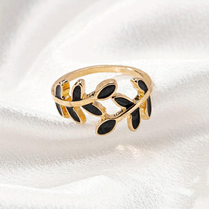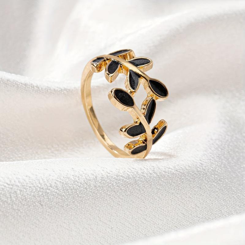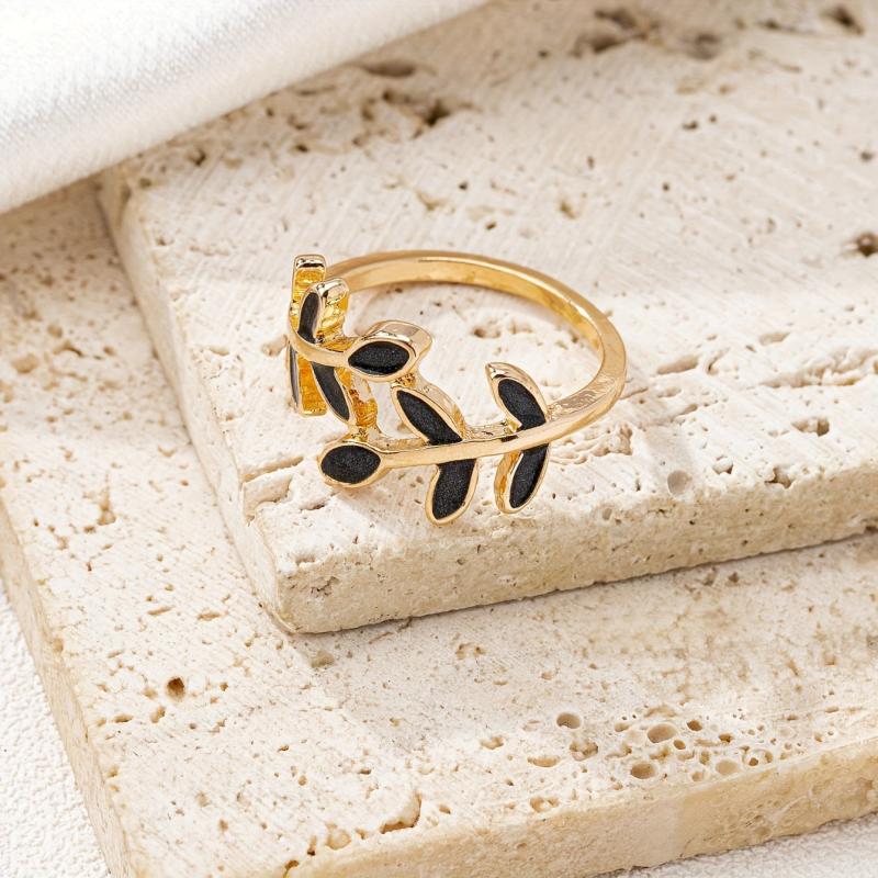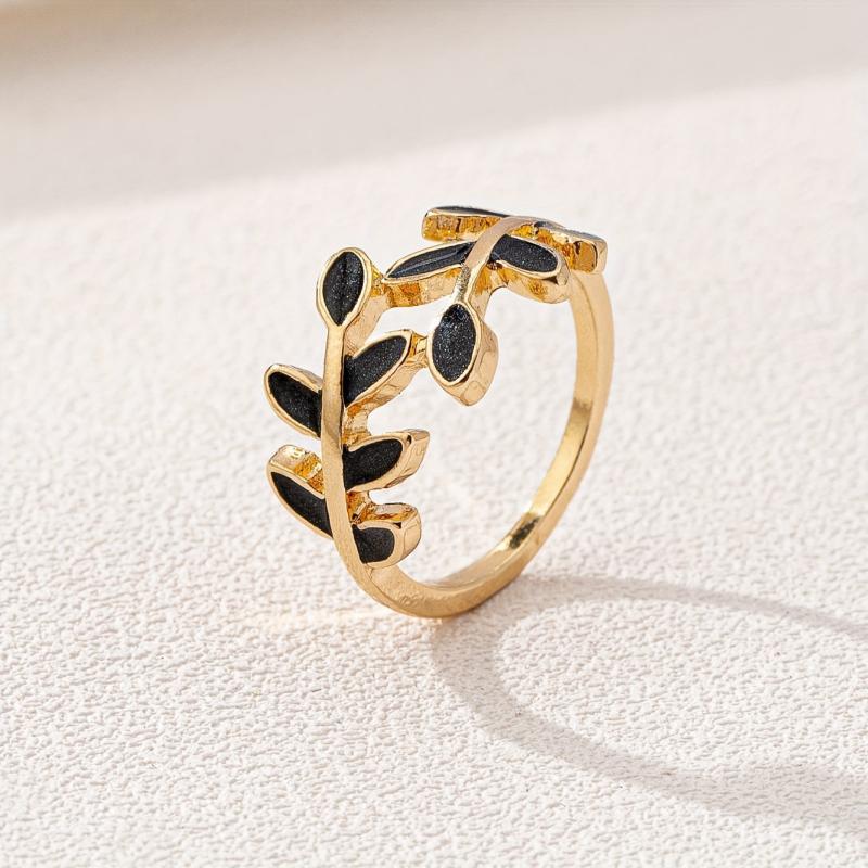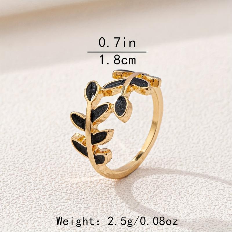 Elegant leaf design ring made of durable zinc alloy with enamel finish. Perfect for daily wear and versatile styling.