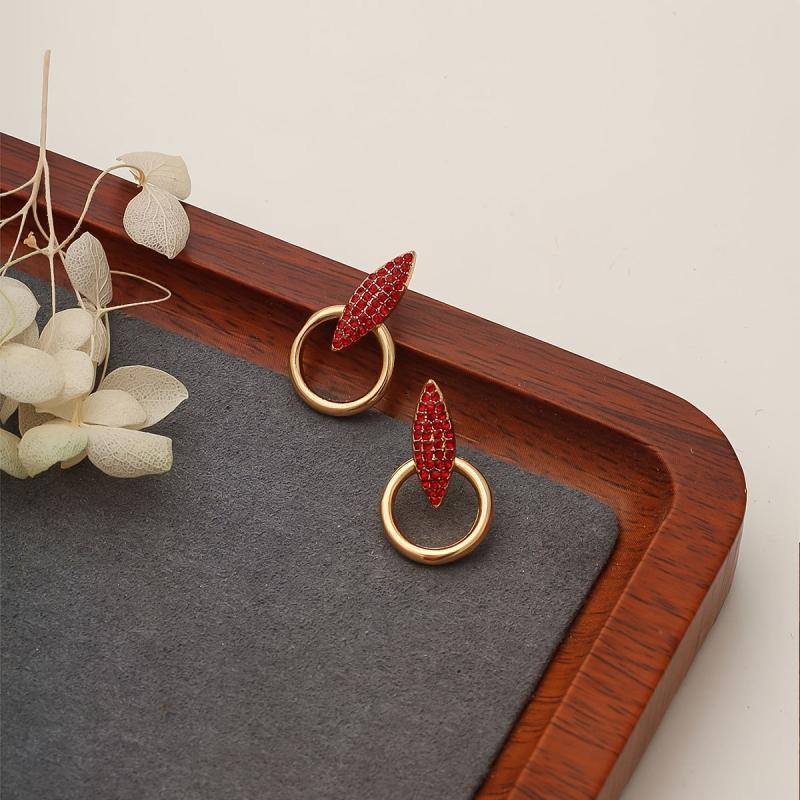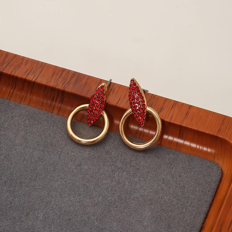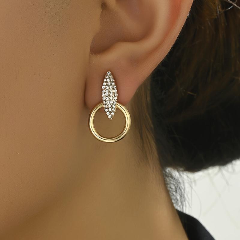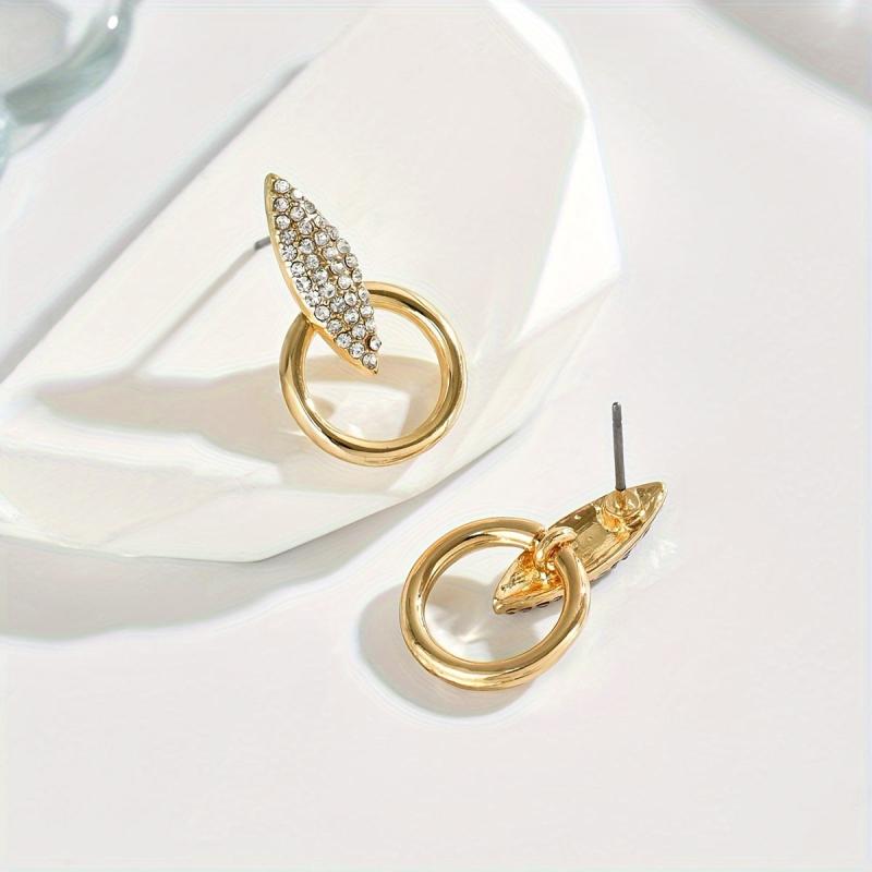 These elegant dangle earrings feature a hollow circle design with leaf and rhinestone inlay. Made of high-quality zinc alloy, these delicate earrings are the perfect accessory for any occasion.