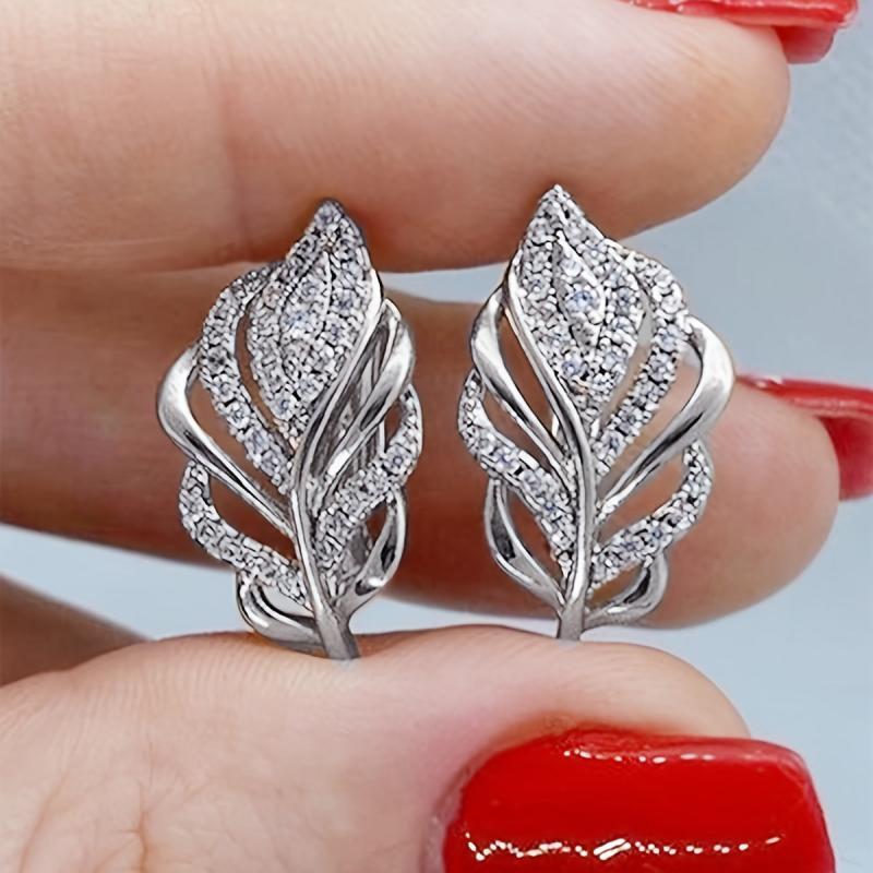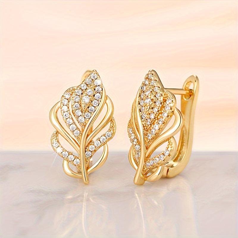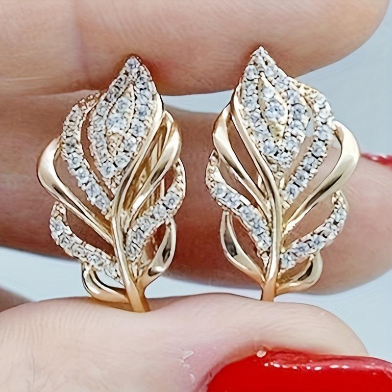 Elegant leaf-shaped stud earrings with zirconia inlay, ideal for daily wear or parties. Made of high-quality golden tone copper.