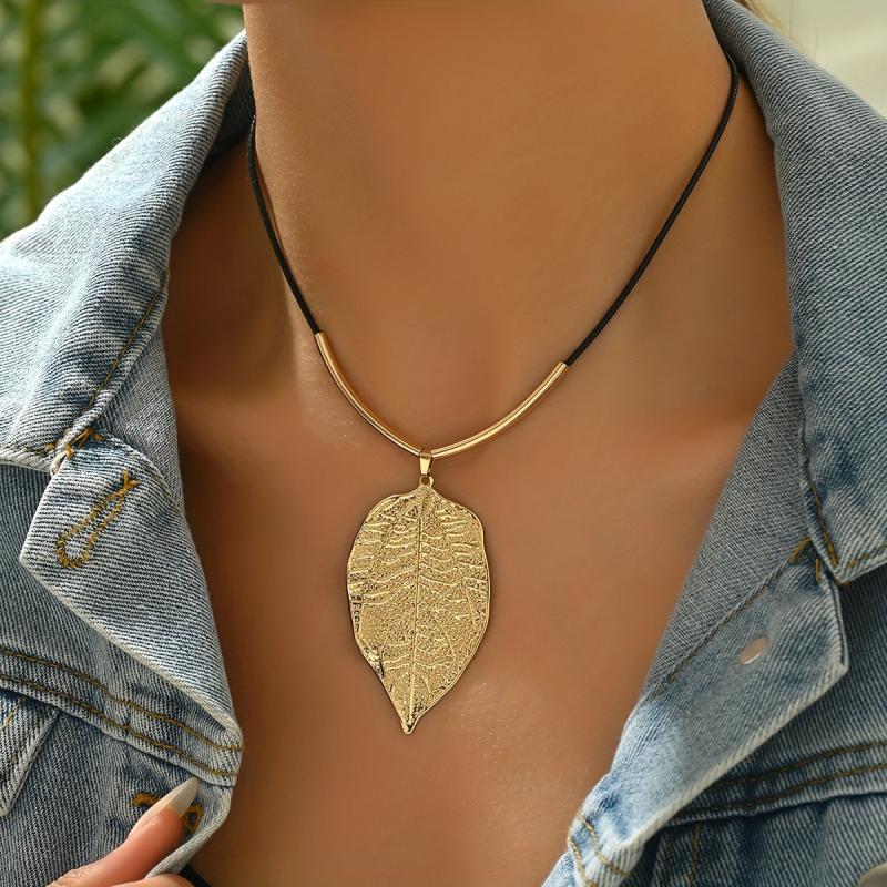Enhance your style with this exquisite leaf texture necklace that exudes elegance and sophistication.