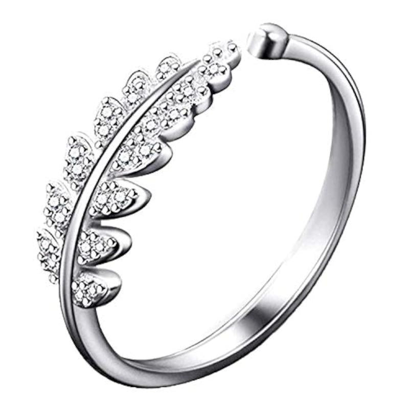 Elegant rhodium plated ring featuring leafy design with sparkling crystal stones.