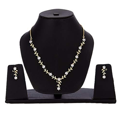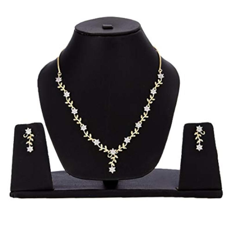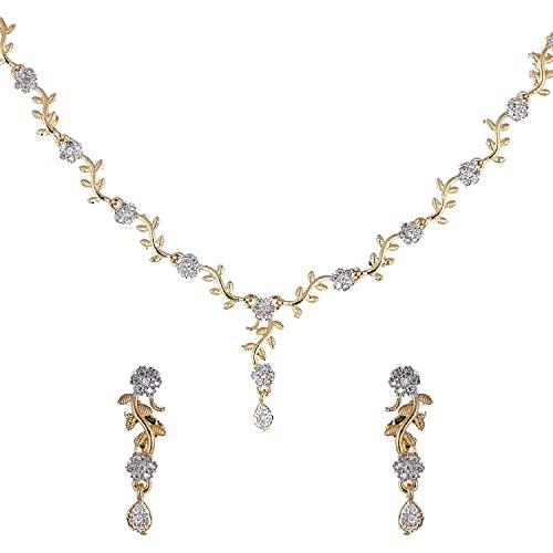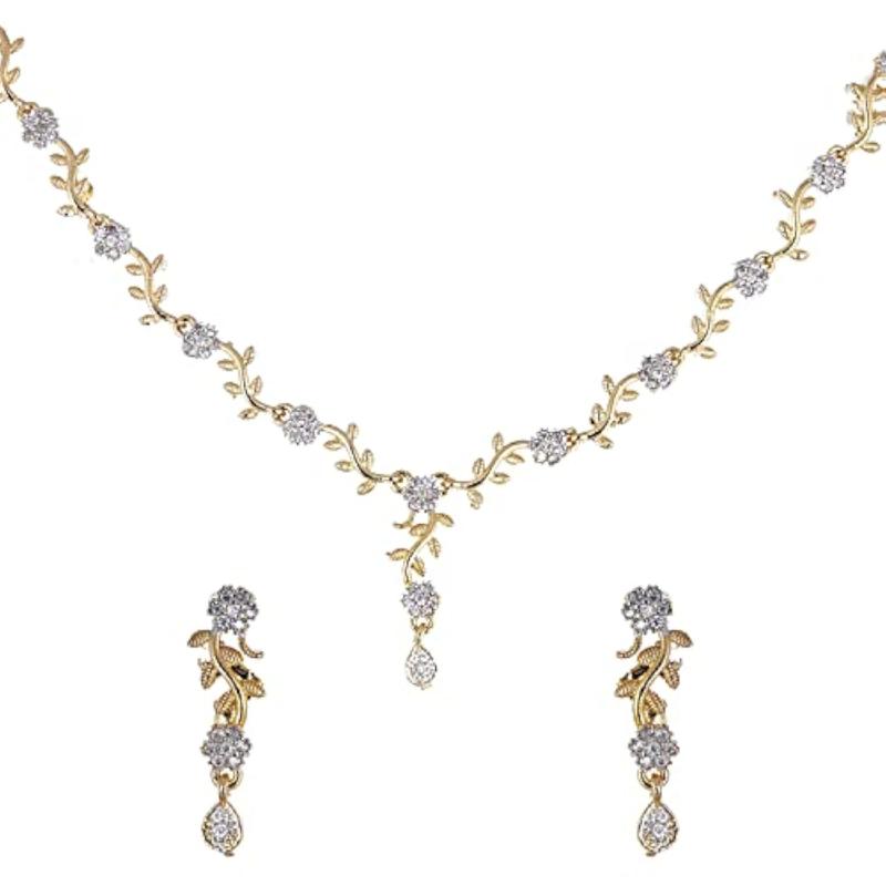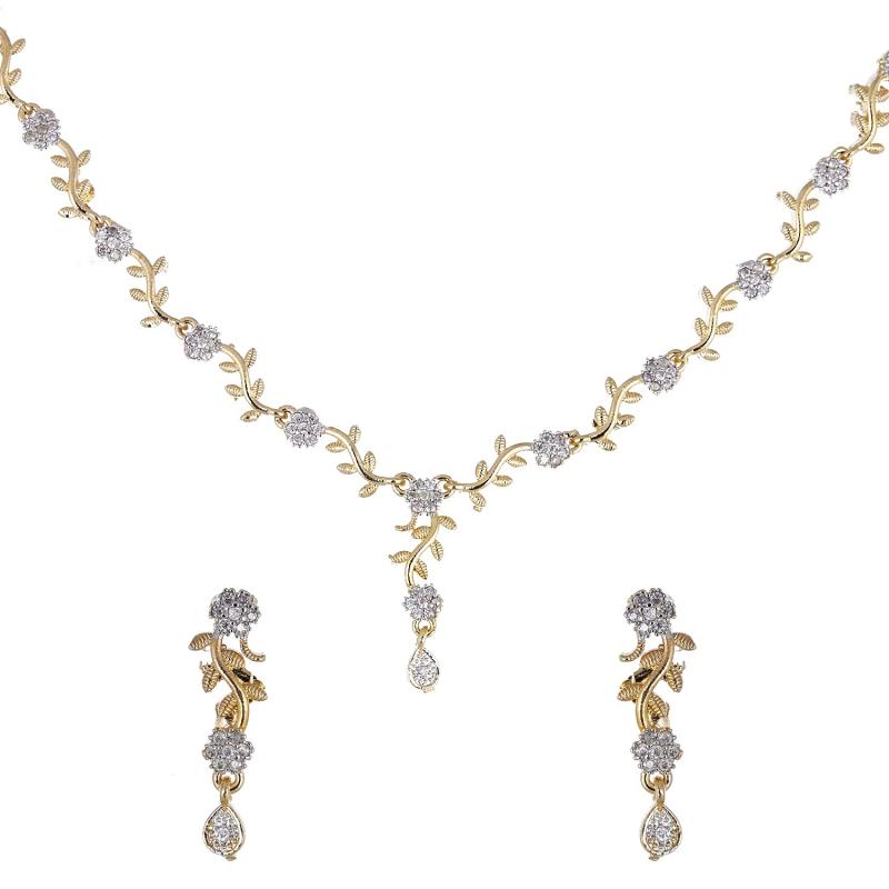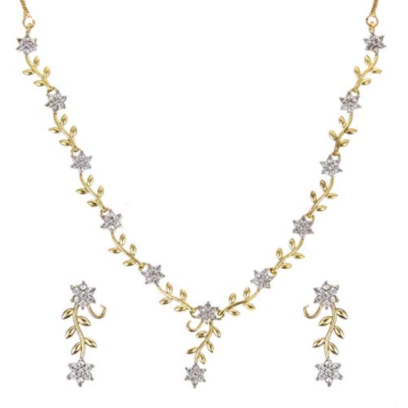 Adorn yourself with this elegant jewellery set featuring sparkling CZ diamond leaf design. Perfect for any special occasion.