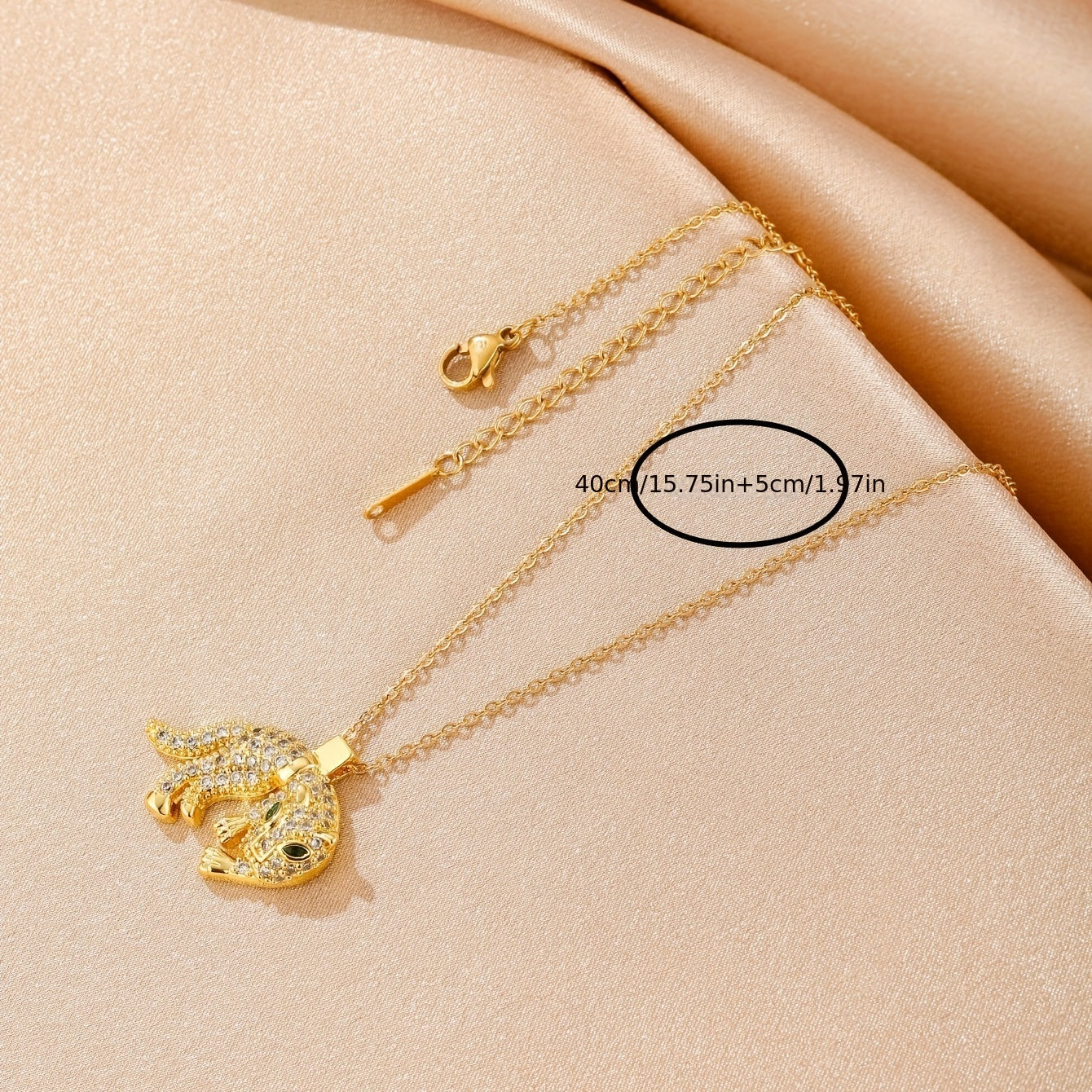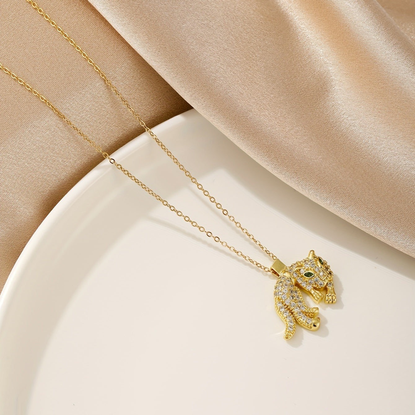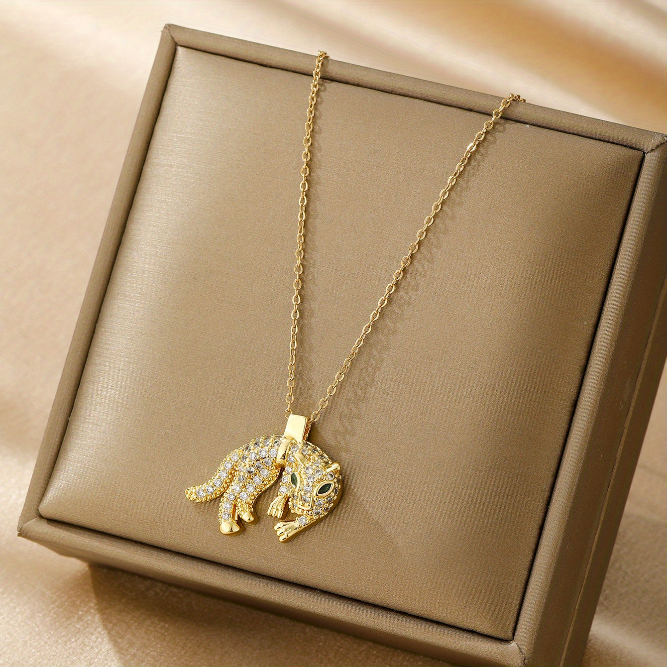 • Stainless steel necklace with leopard head pendant and rhinestones