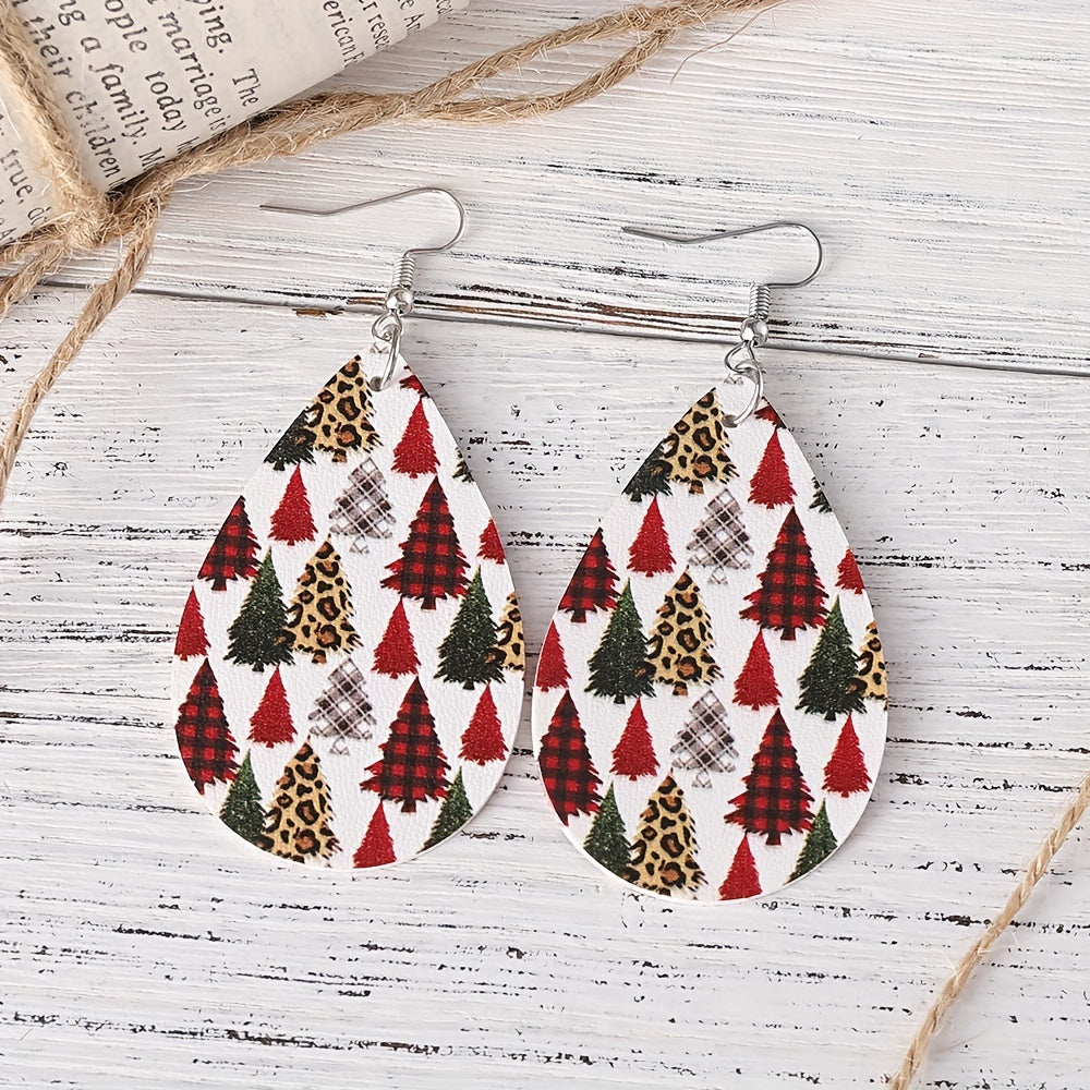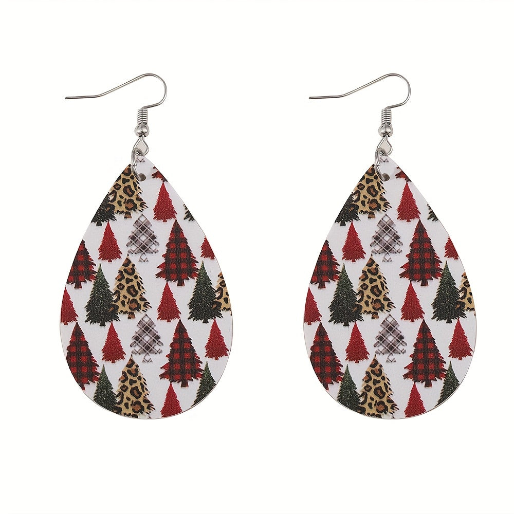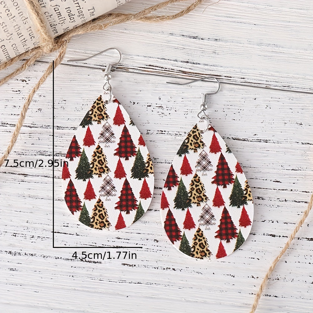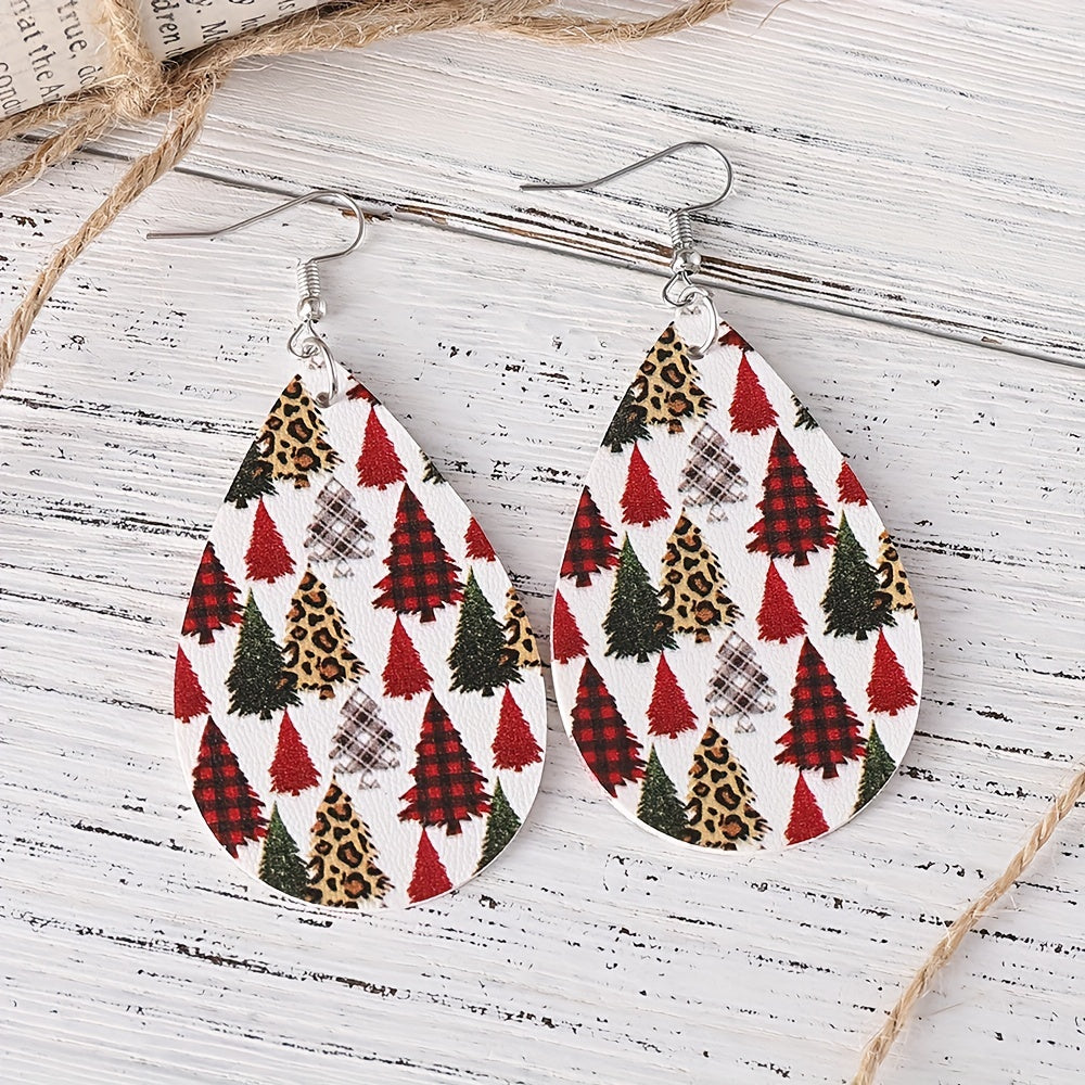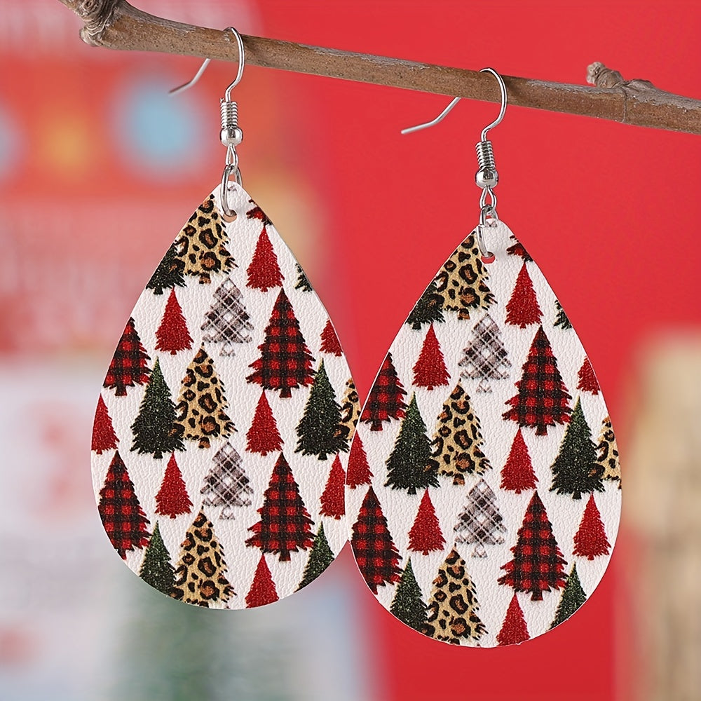 Add a touch of retro style to your Christmas outfit with these leopard print dangle earrings. Made from PU leather, these earrings feature a Christmas tree pattern that is perfect for the holiday season.