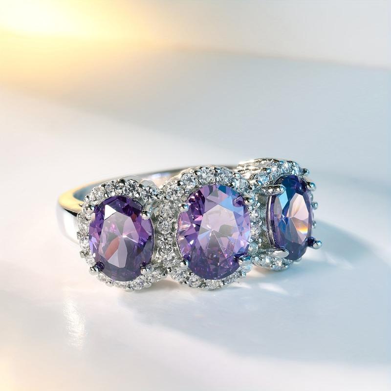 A beautiful synthetic zirconia ring in light purple, perfect for proposing to single men and women.