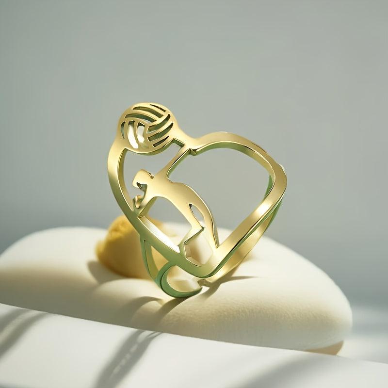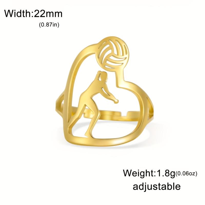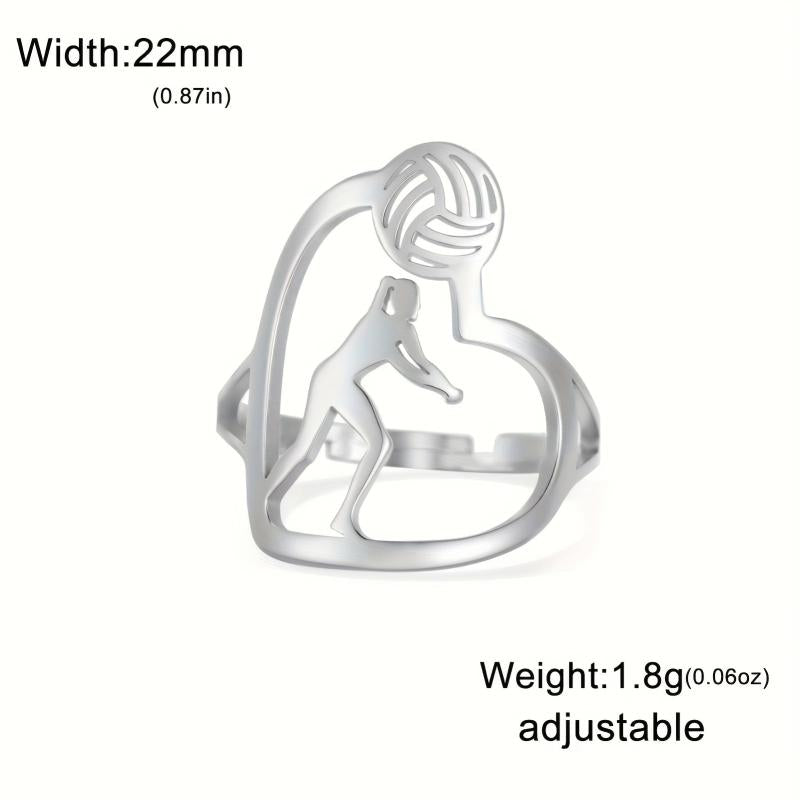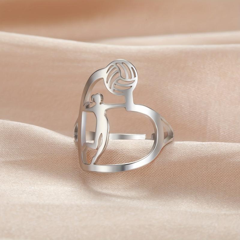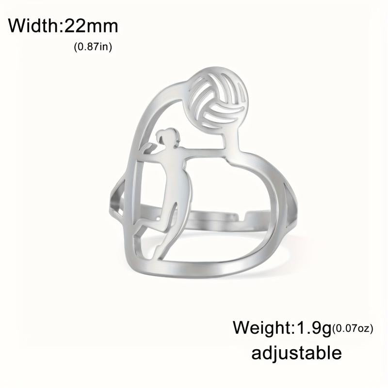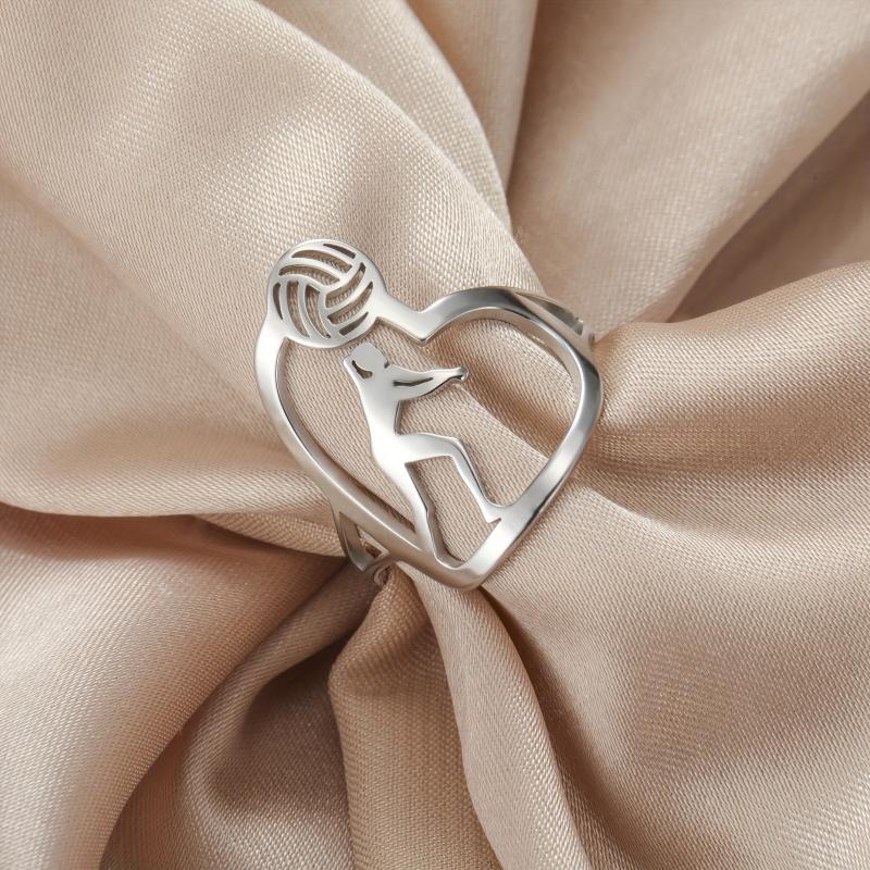 This sports ring features a heart-shaped design and is made of stainless steel. It is perfect for volleyball enthusiasts who want to show their love for the sport in a stylish way.