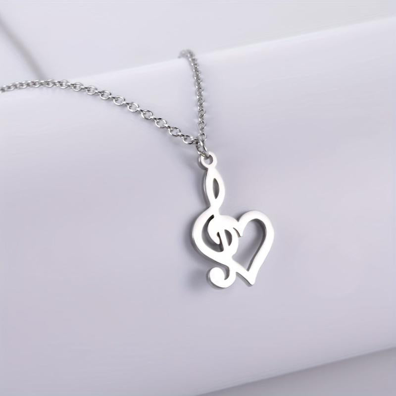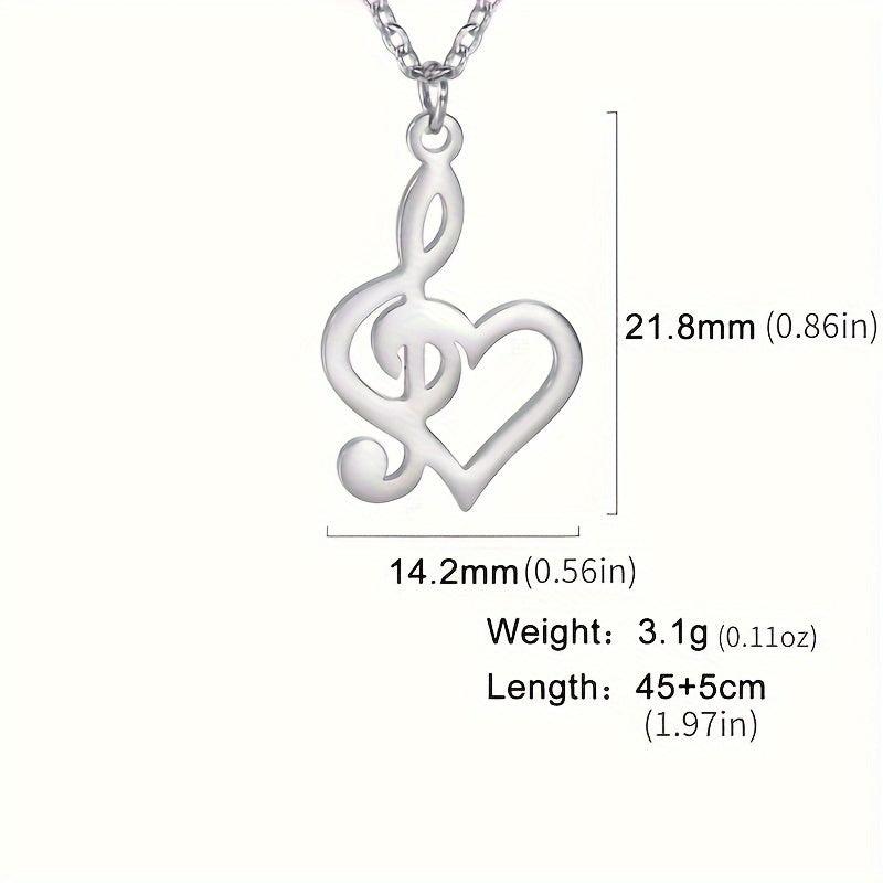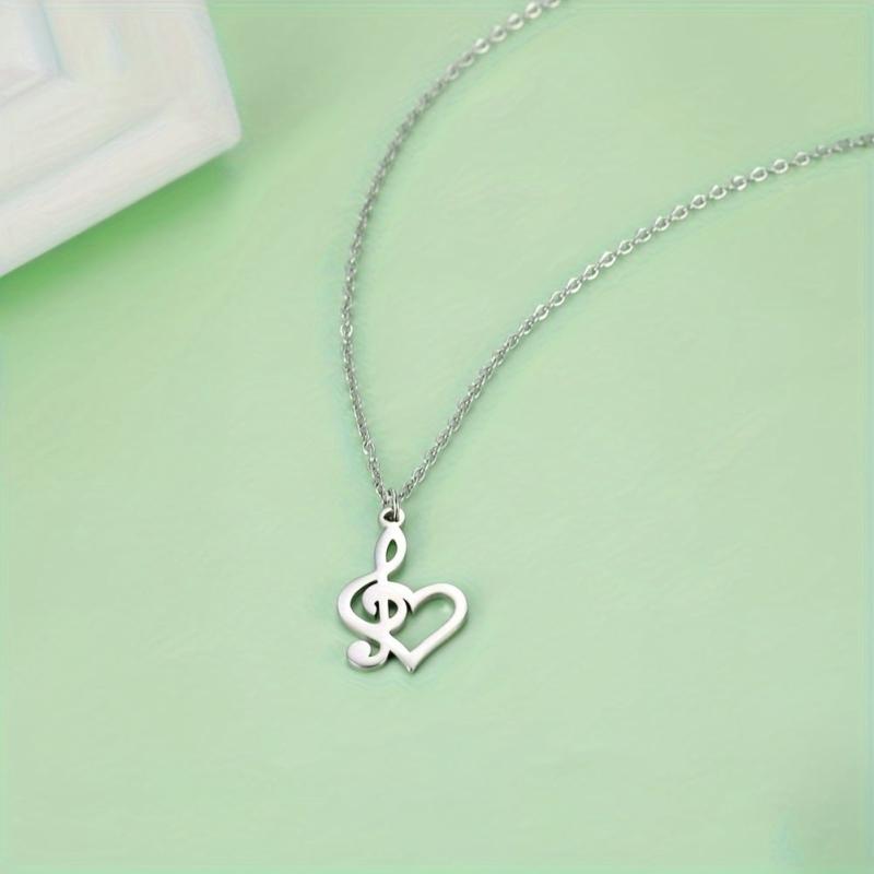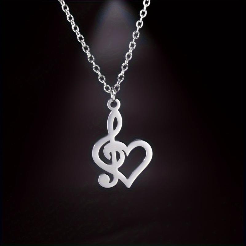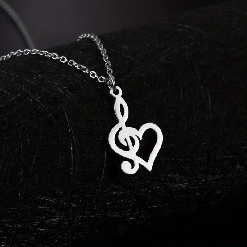 This stainless steel pendant necklace features a treble clef and heart design, perfect for men with a bohemian style. It is a durable and romantic gift that symbolizes love for music.