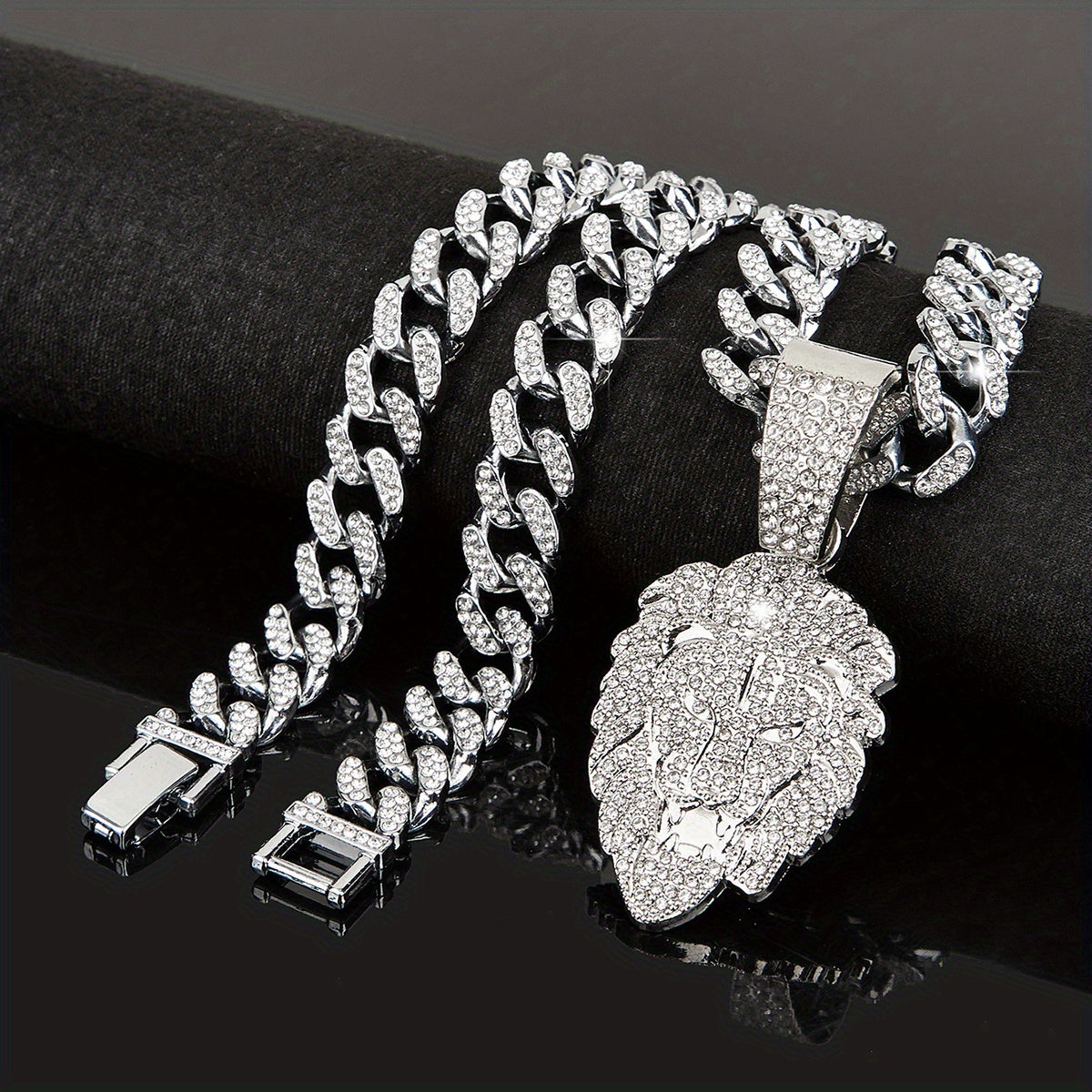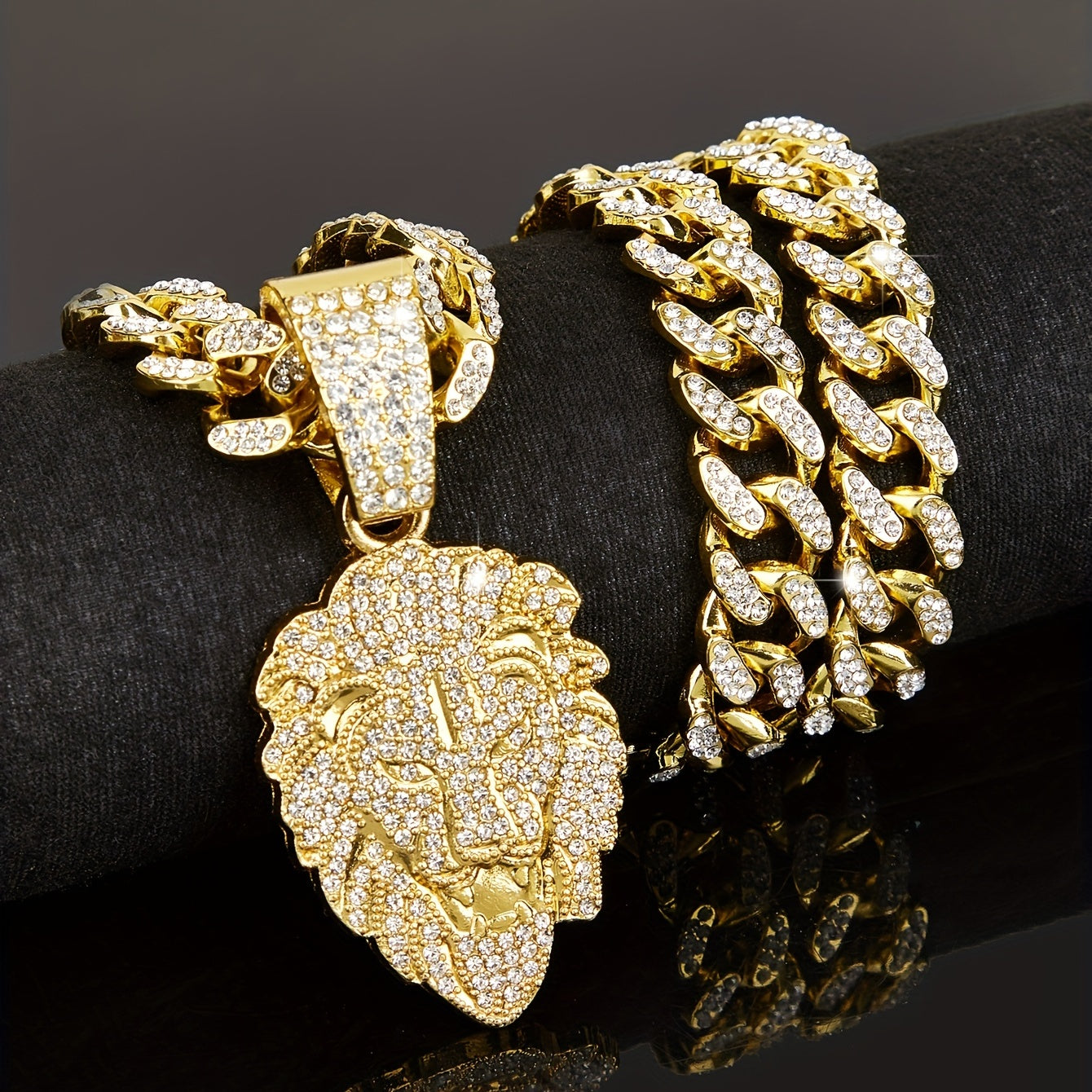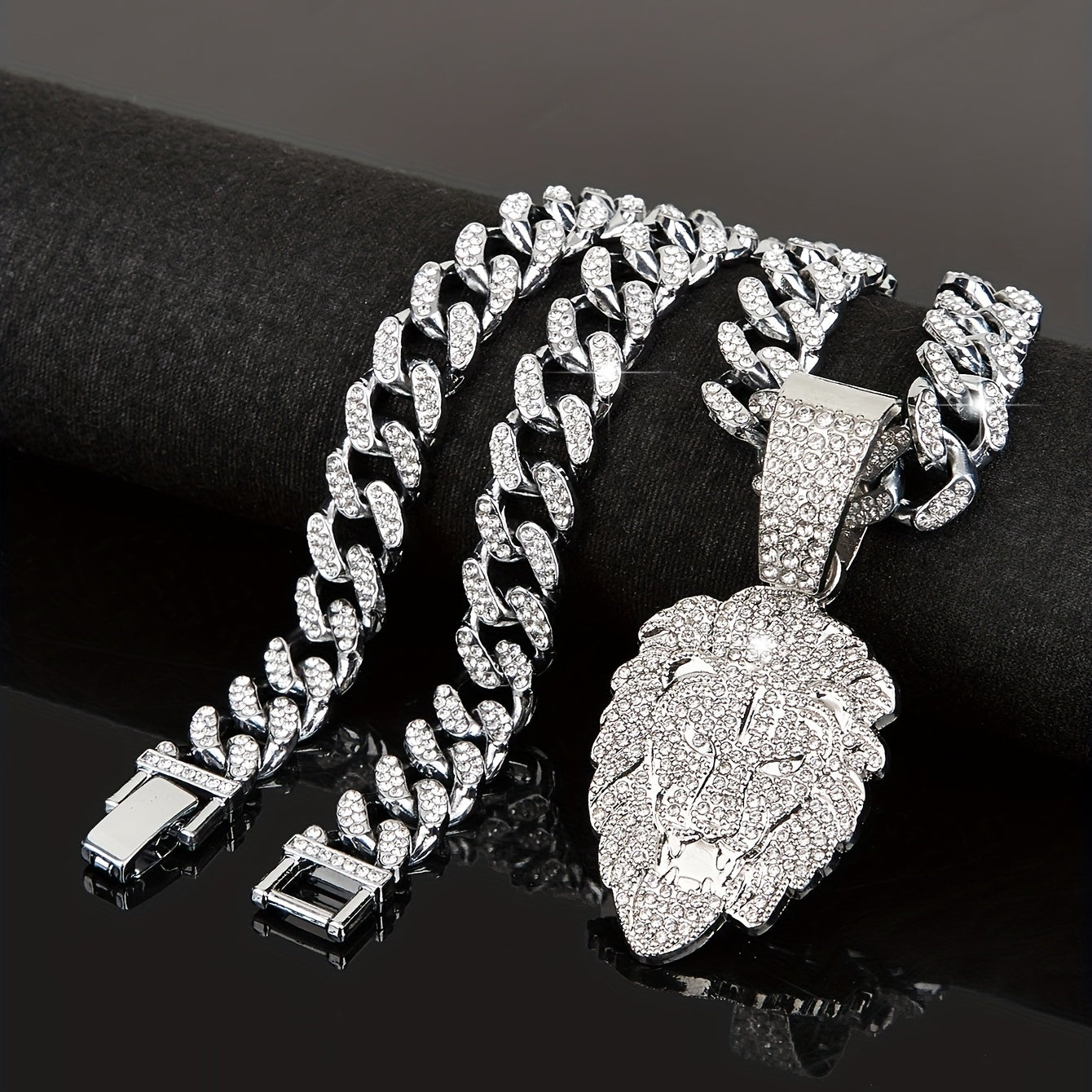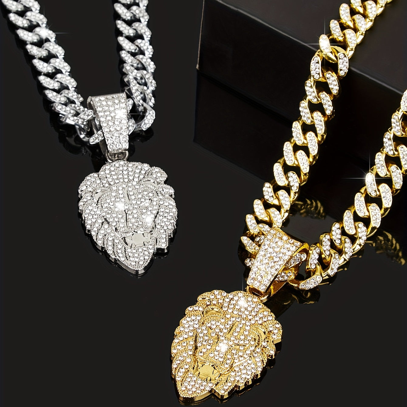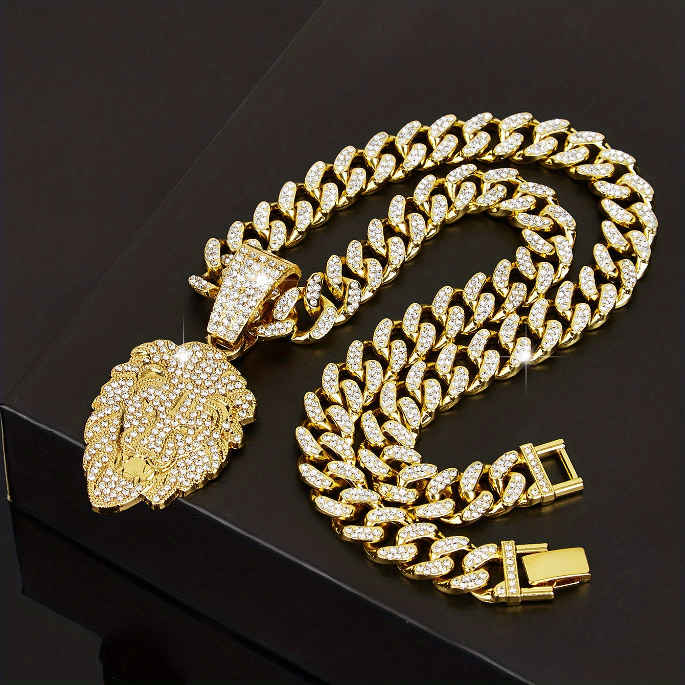 This stylish hip hop necklace features a lion head pendant with inlaid rhinestones on a Cuban chain. Perfect gift for women and girls who love edgy jewelry.