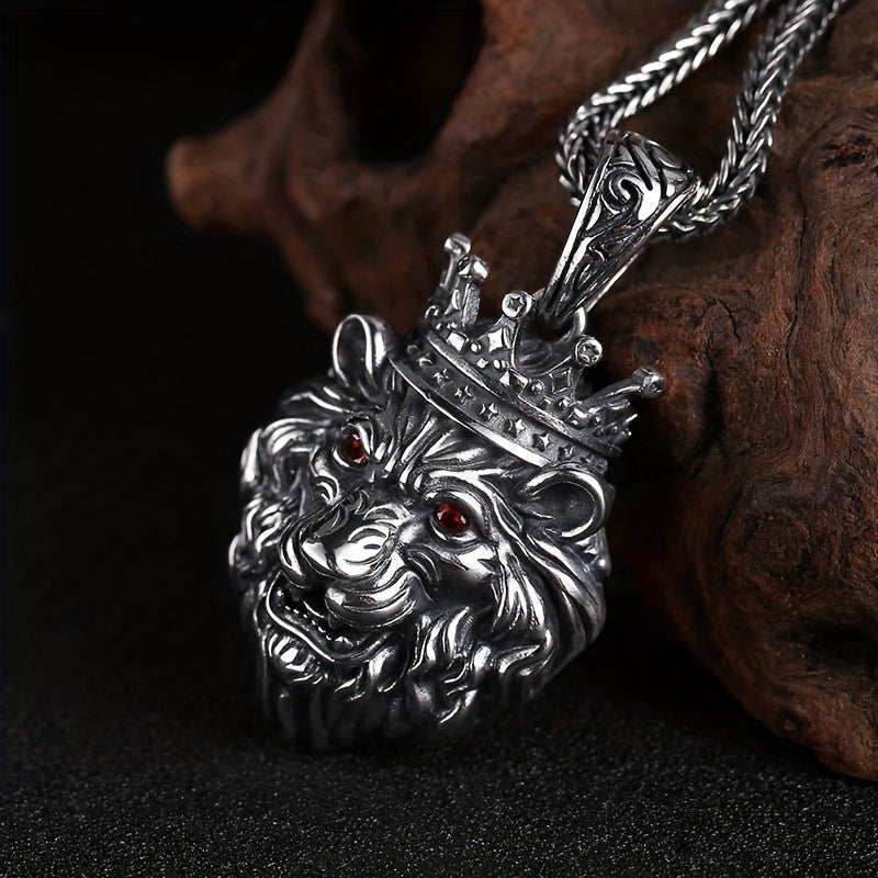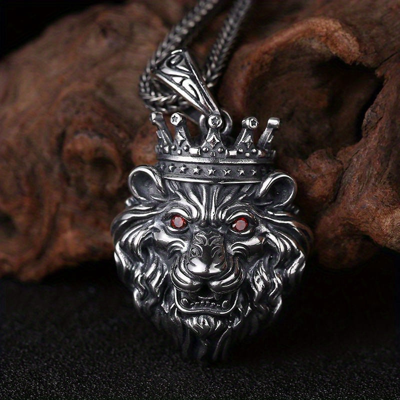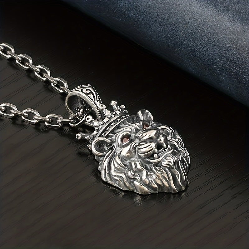 This bold lion head pendant necklace is a symbol of power and strength. It features a retro design with cooper plating and silver accents, making it a fashionable accessory for men.