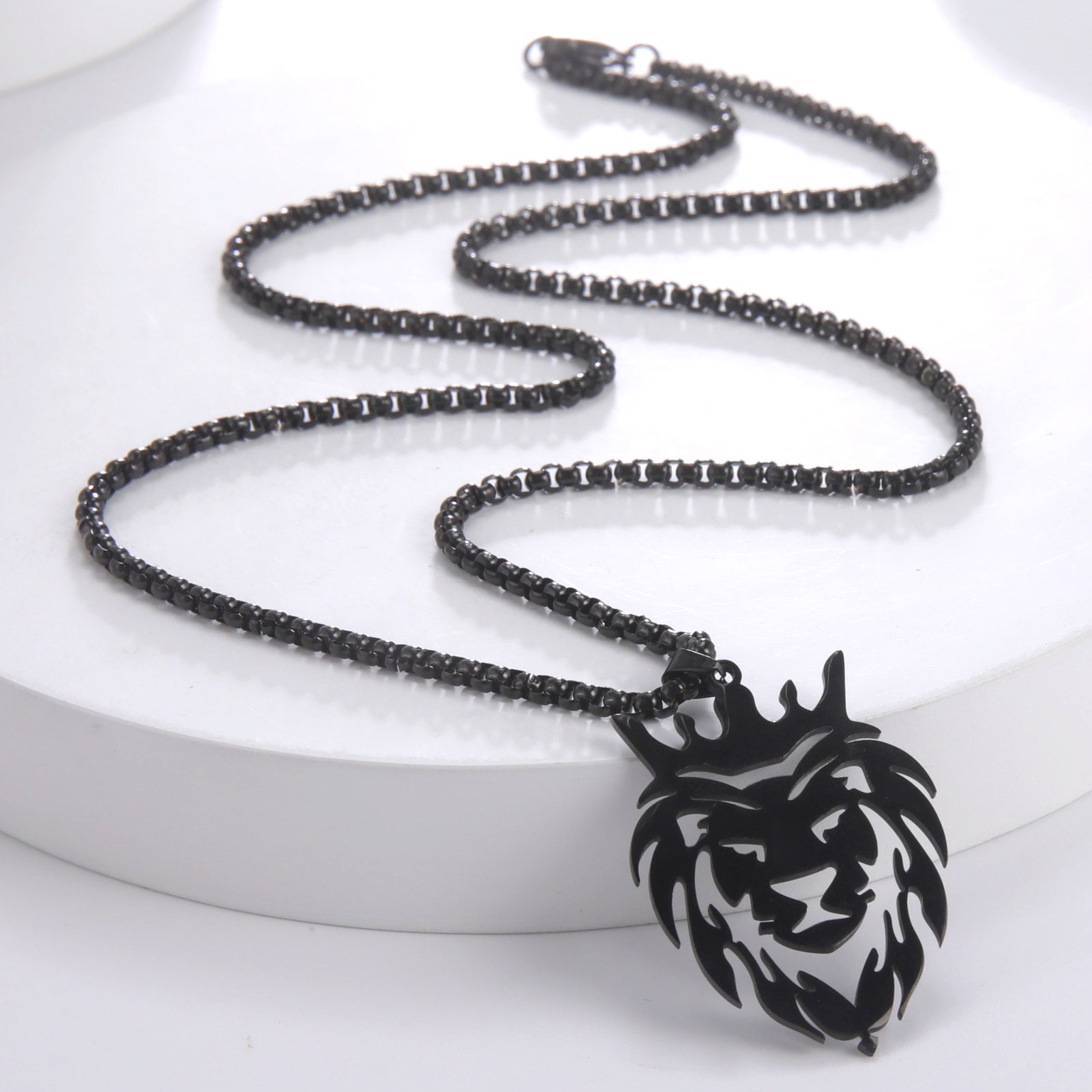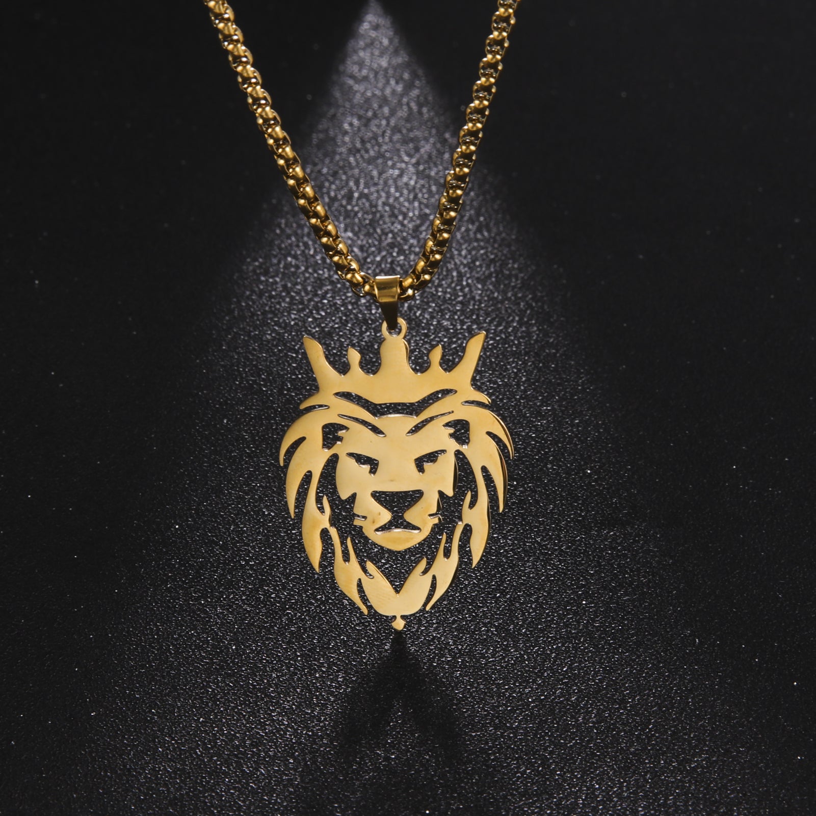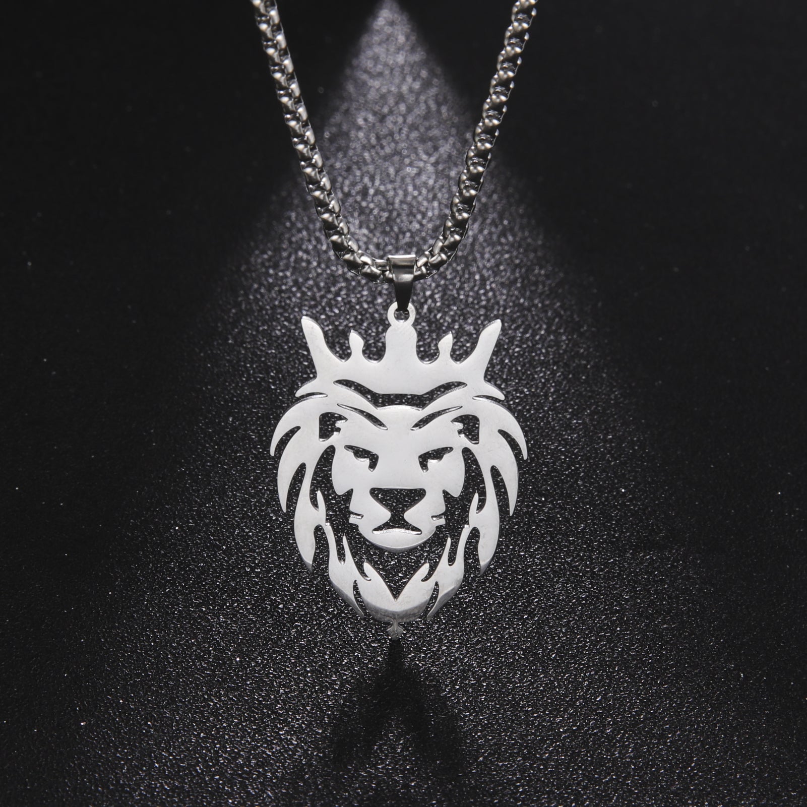 Make a bold statement with this lion with king crown pendant necklace. Crafted from stainless steel, this punk animal necklace is perfect for men and boys who want to show off their style.