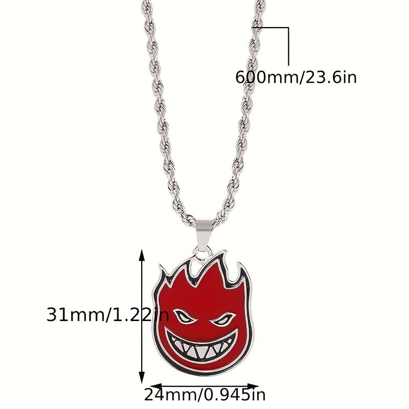 This Little Devil Red Flame Necklace features a devil smile design, perfect for men who like edgy accessories.