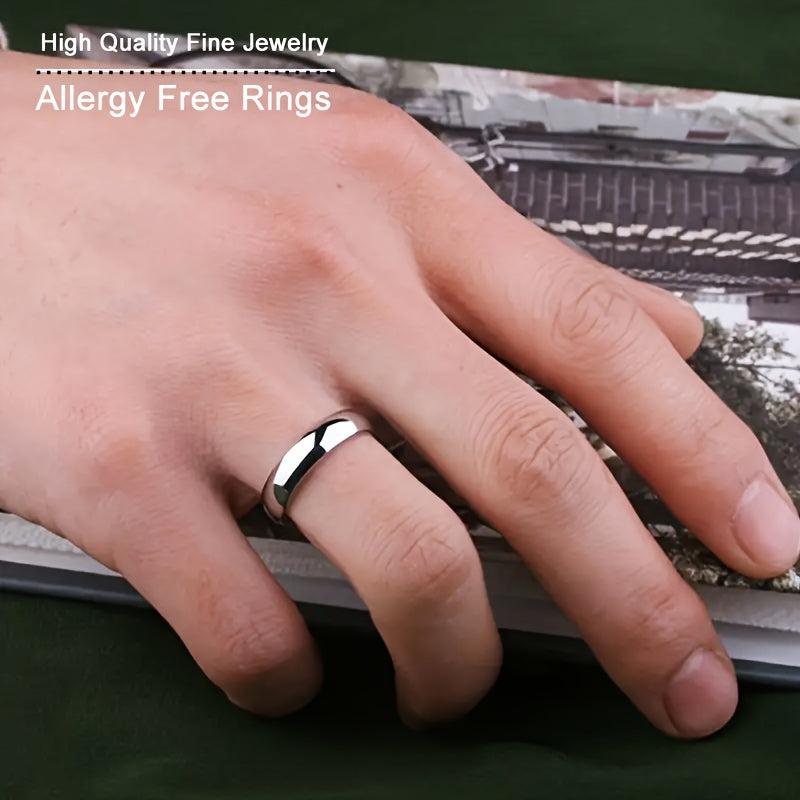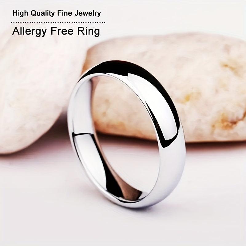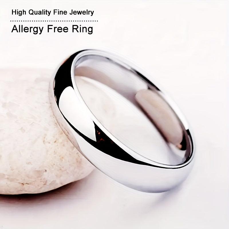 This minimalist ring is made of hypoallergenic tungsten with a polished golden finish. It is durable, tarnish-resistant, and perfect for everyday wear or special occasions like weddings and engagements.