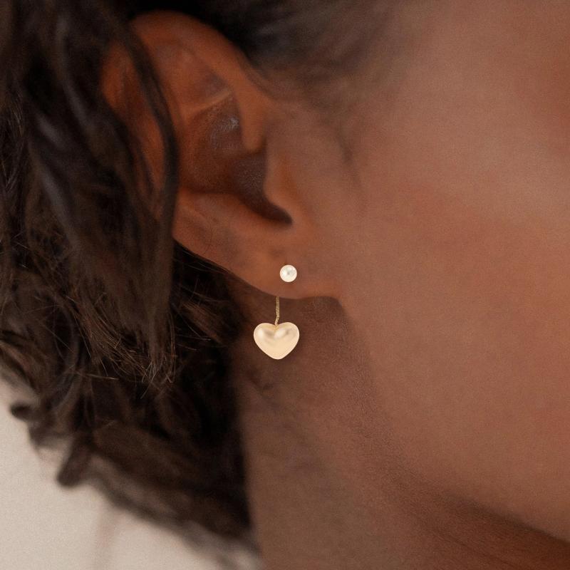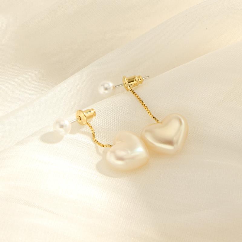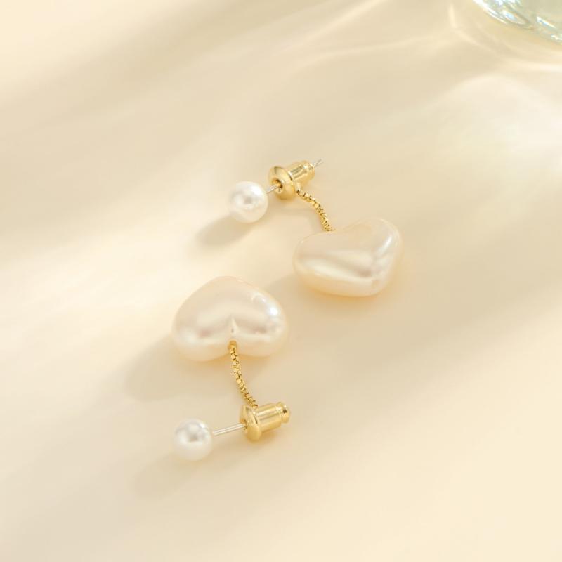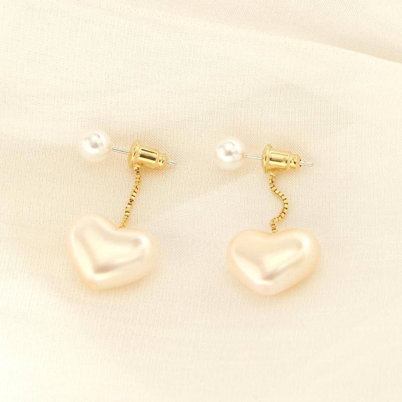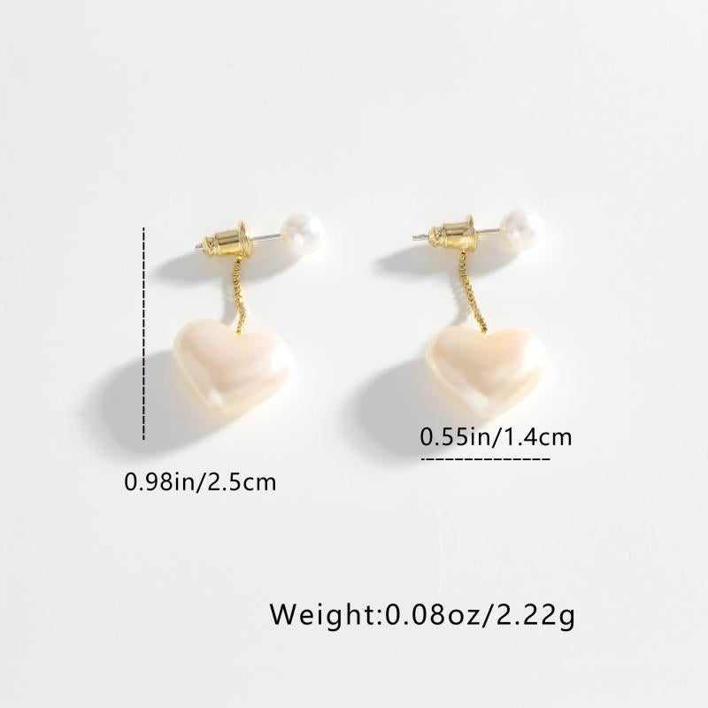 Elegant heart-shaped synthetic pearl earrings with 925 silvery posts. Perfect for daily wear and music events.