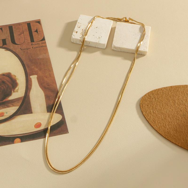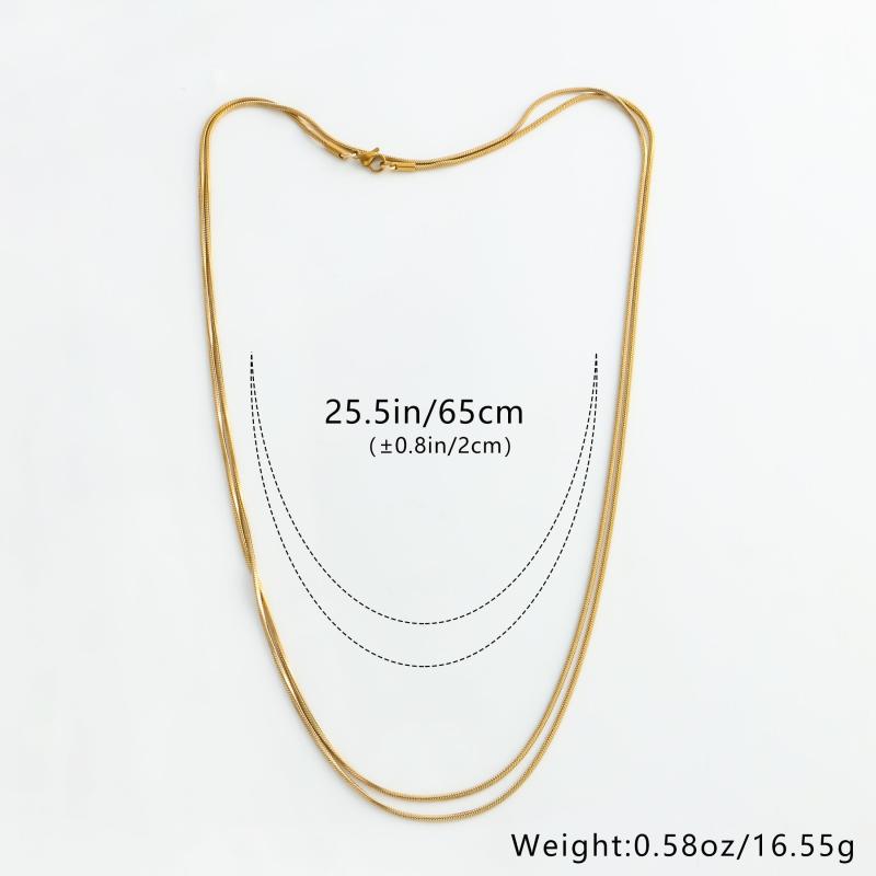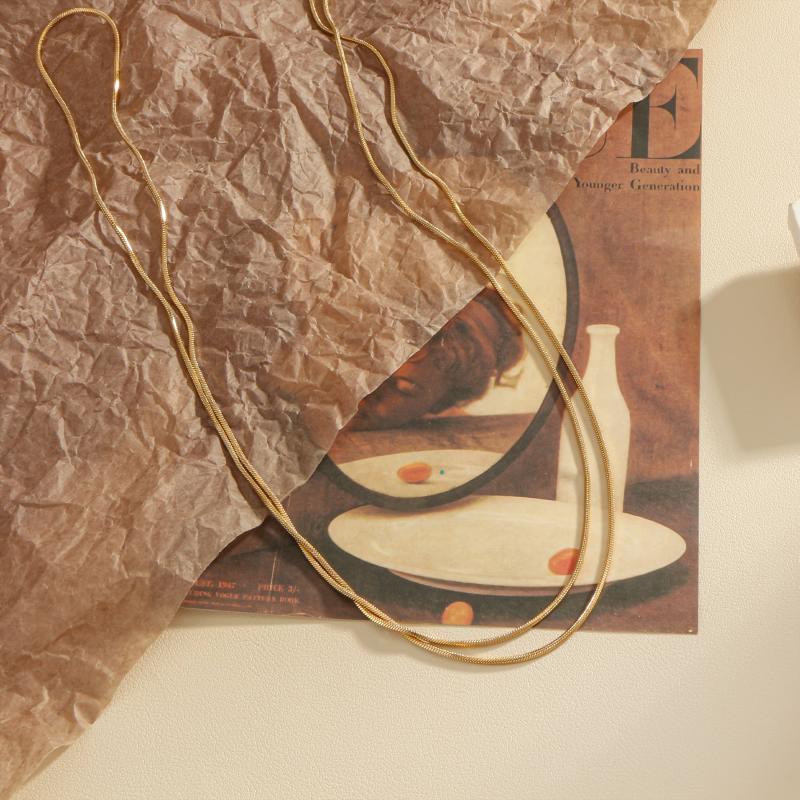 This women's necklace features a minimalist design with a vintage snake chain pendant that is hypoallergenic and crafted from stainless steel in a golden tone. Perfect for everyday wear or holiday gifting.