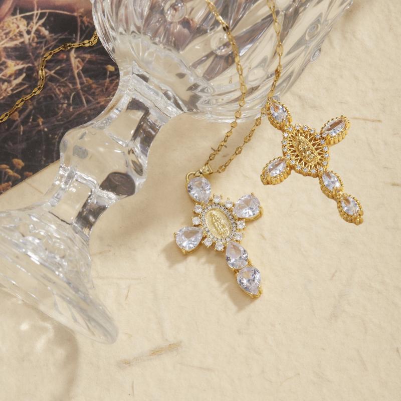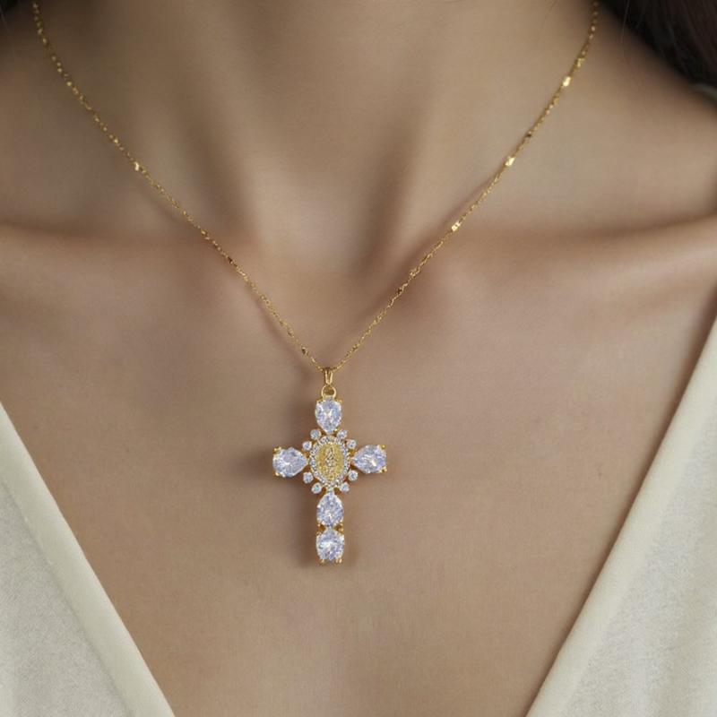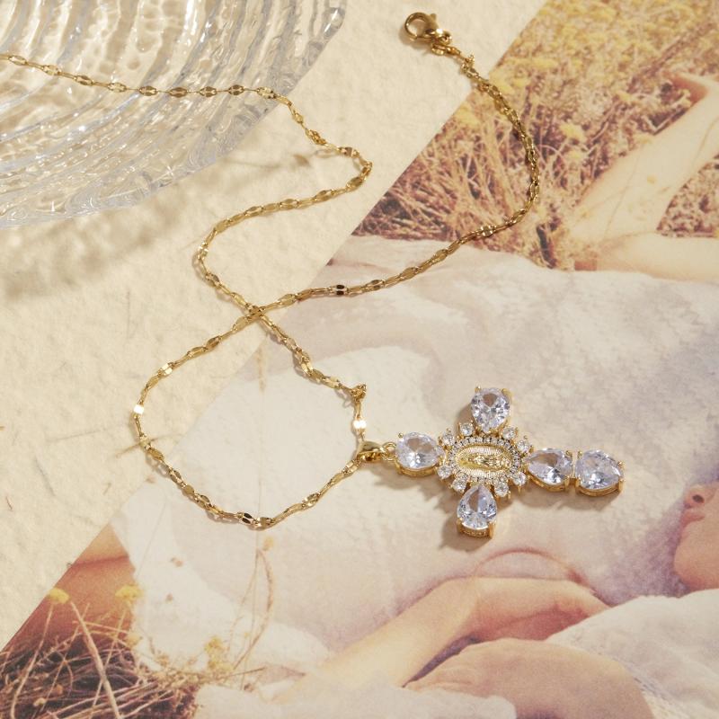 This stainless steel cross pendant necklace is a beautiful accessory for women celebrating Saint Patrick's religious significance.