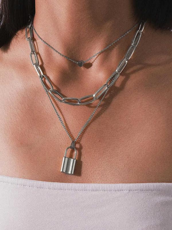 This elegant necklace features a heart-shaped pendant with a lock design, perfect for adding a touch of charm to your outfit.