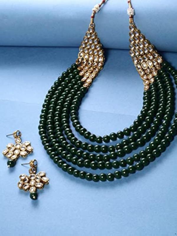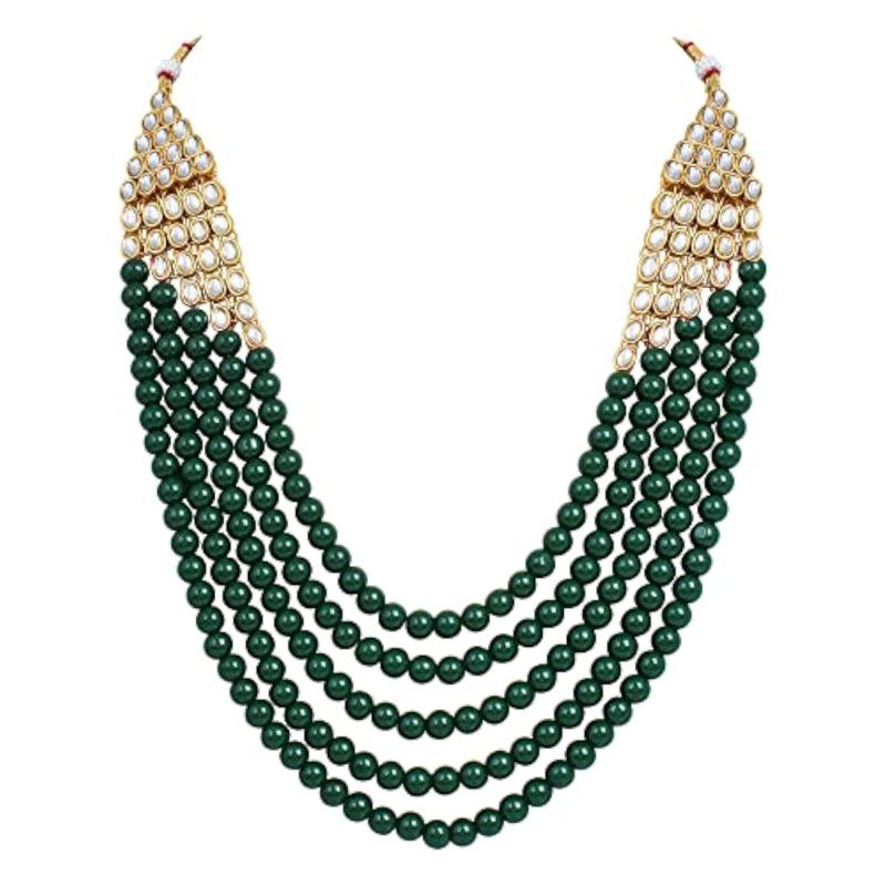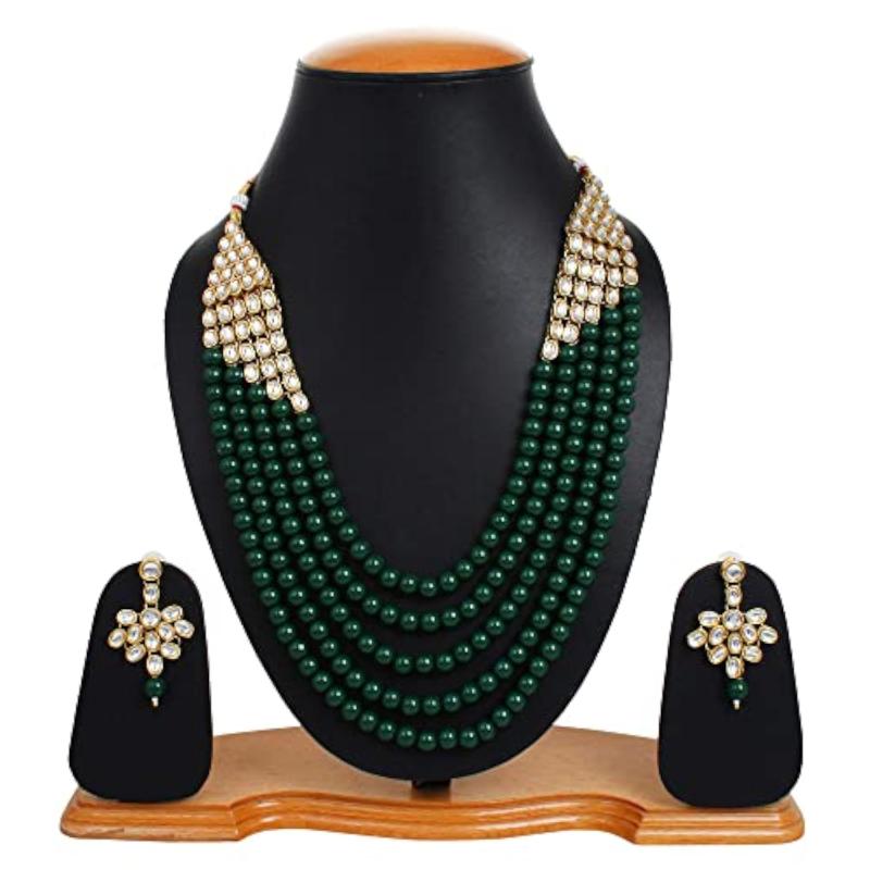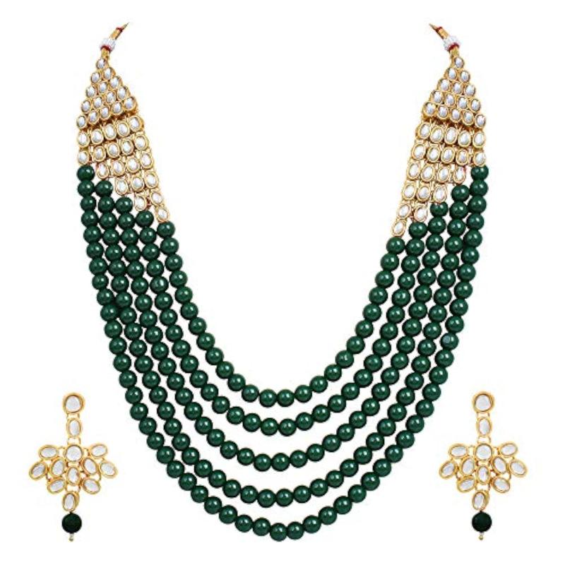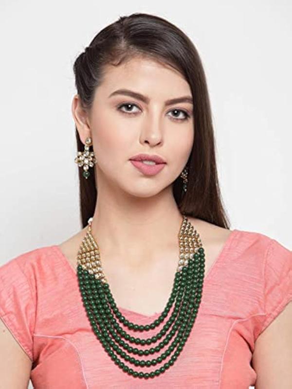 Enhance your wedding attire with this exquisite long Kundan traditional necklace set. It features intricate detailing and elegant design, making it perfect for special occasions.