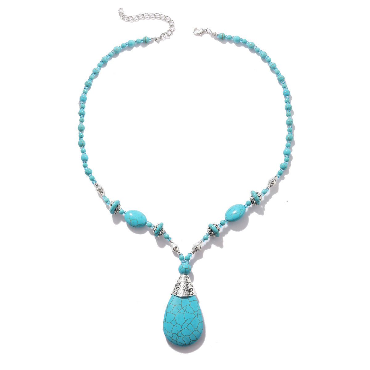 Long Teardrop Turquoise Pendant Ethnic Style Necklace