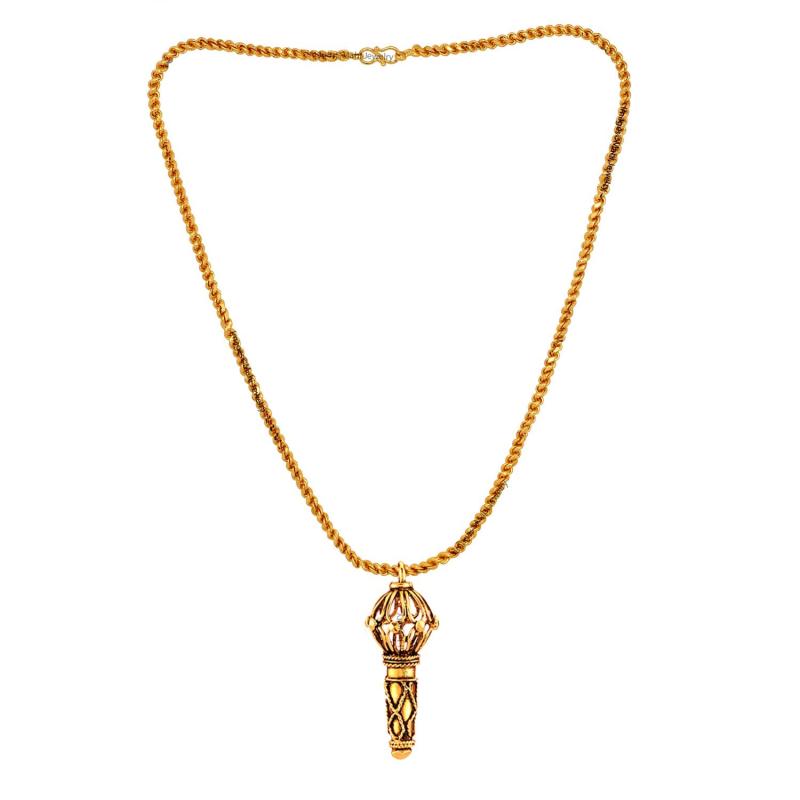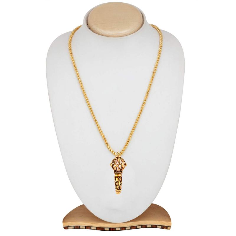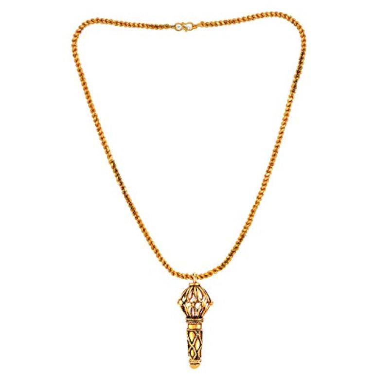 This religious pendant features the mighty Lord Hanuman Gada design. Comes with a 20-inch chain for men.