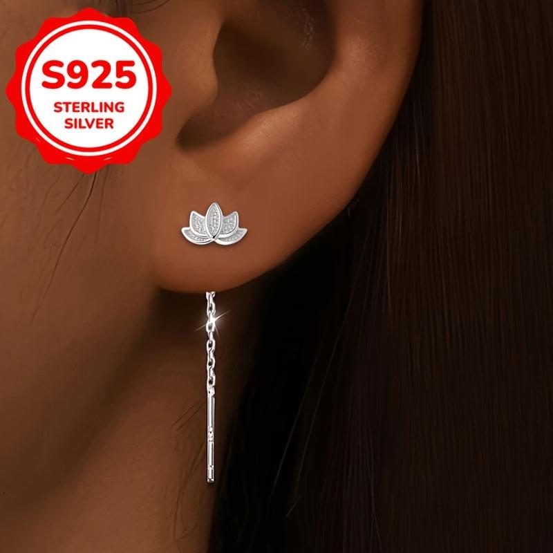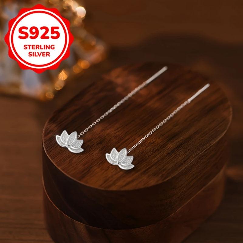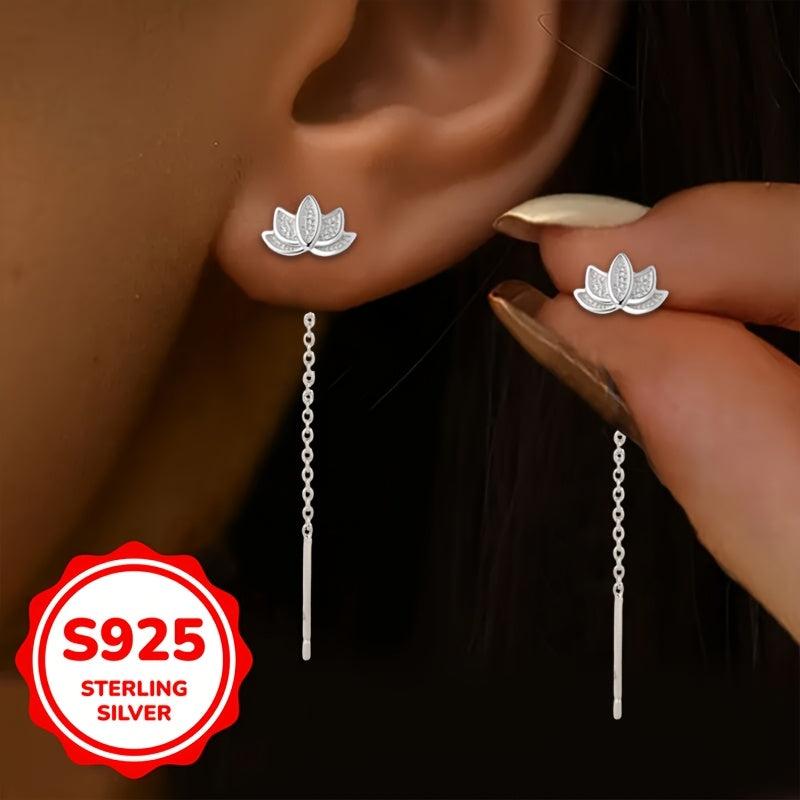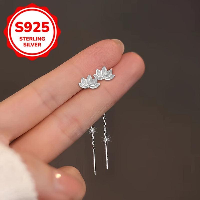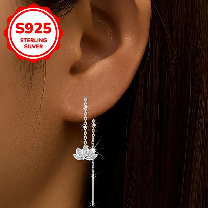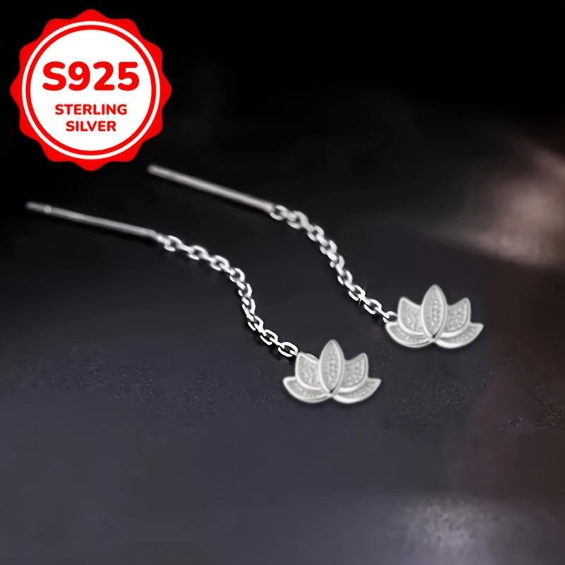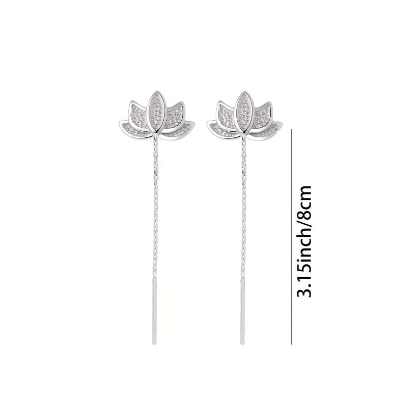 These dangle earrings feature a lotus flower tassel design. Made with S925 silver, they are lightweight and perfect for everyday wear during spring and summer. Great for graduation and special occasions.