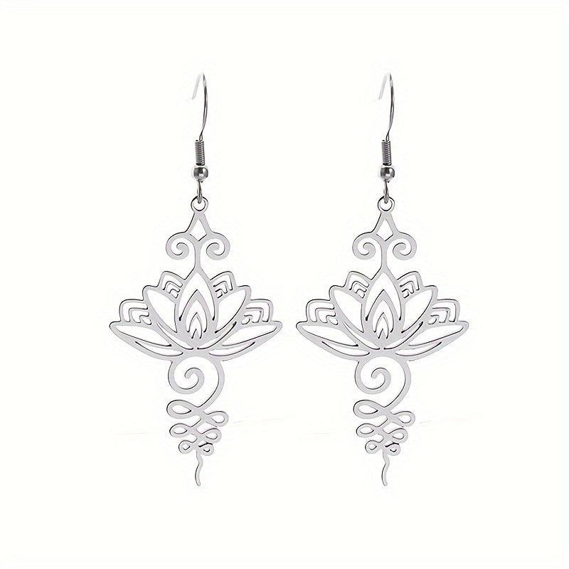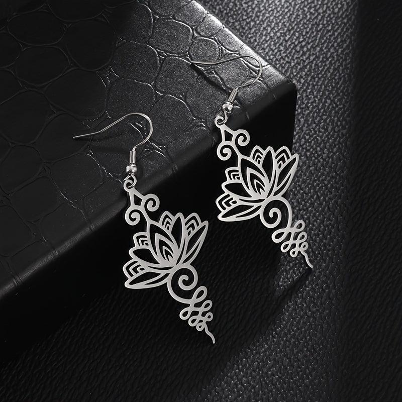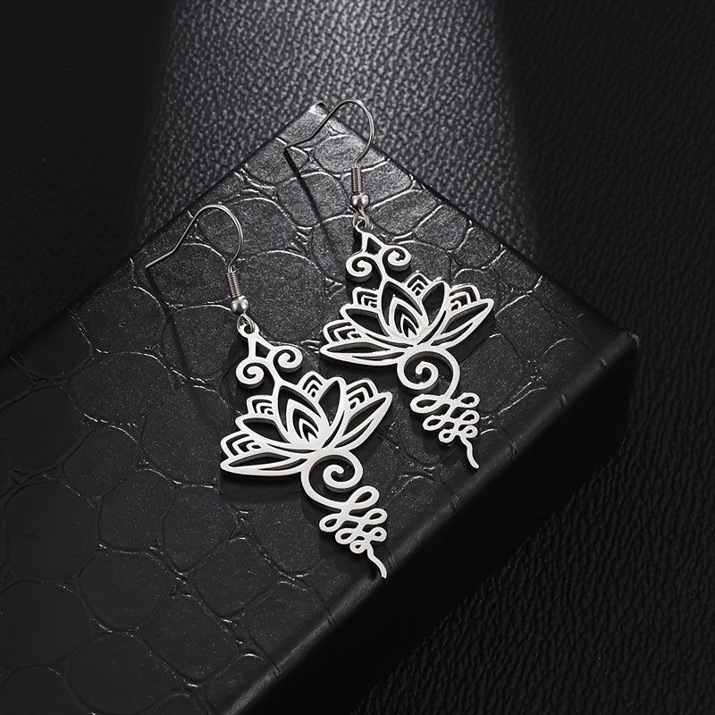 Add a touch of elegance to your outfit with these fashionable earrings featuring classic lotus patterns. Made of hypoallergenic stainless steel, they are perfect for all occasions.