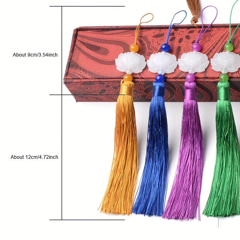This elegant lotus tassel hanging ear jade ornament is a delightful addition to your outfit. Play with a lanyard for added charm.