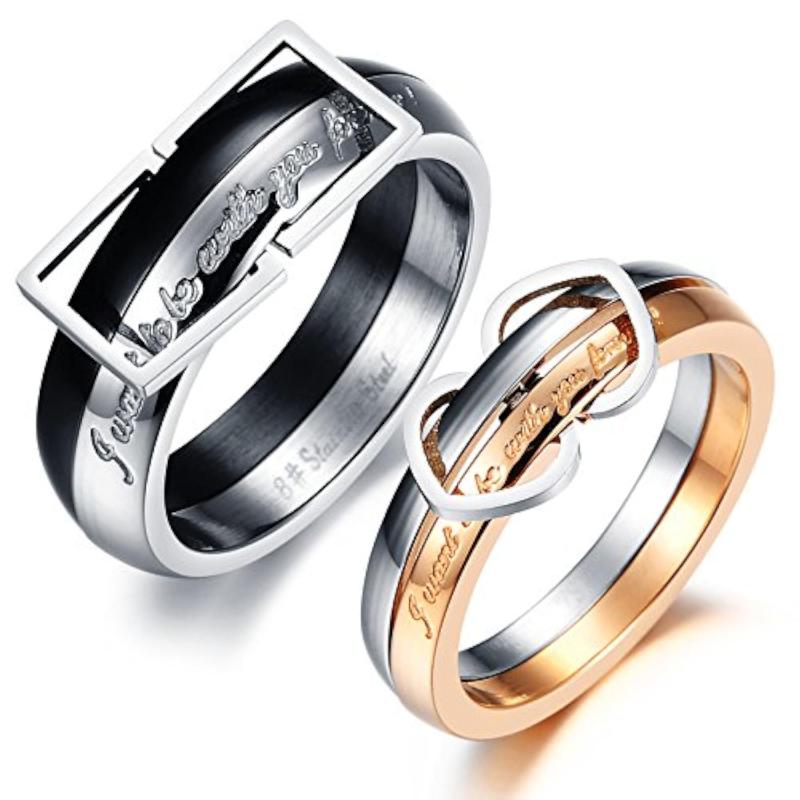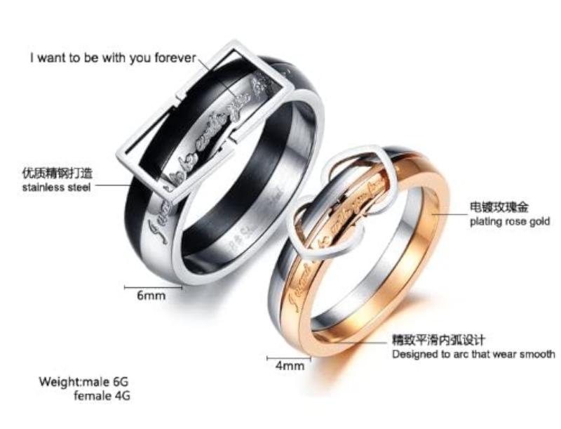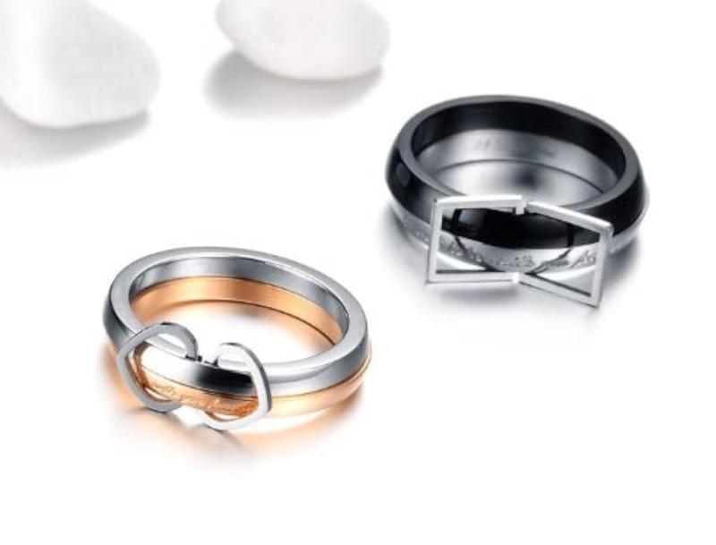 Stylish and elegant 316L stainless steel couple rings featuring love birds design with crystals. Perfect for expressing your love and commitment.