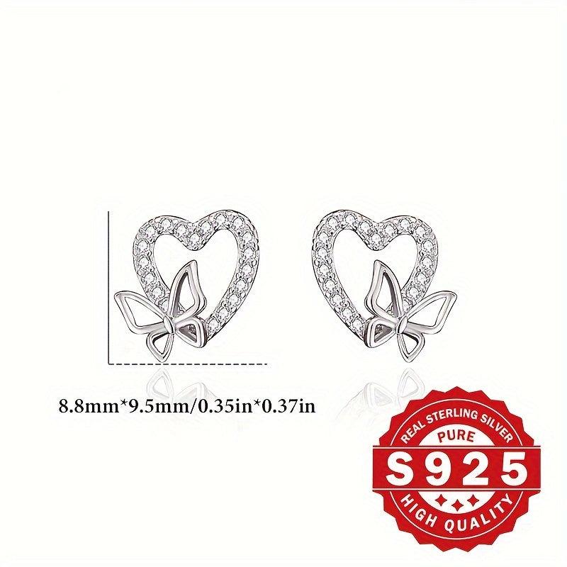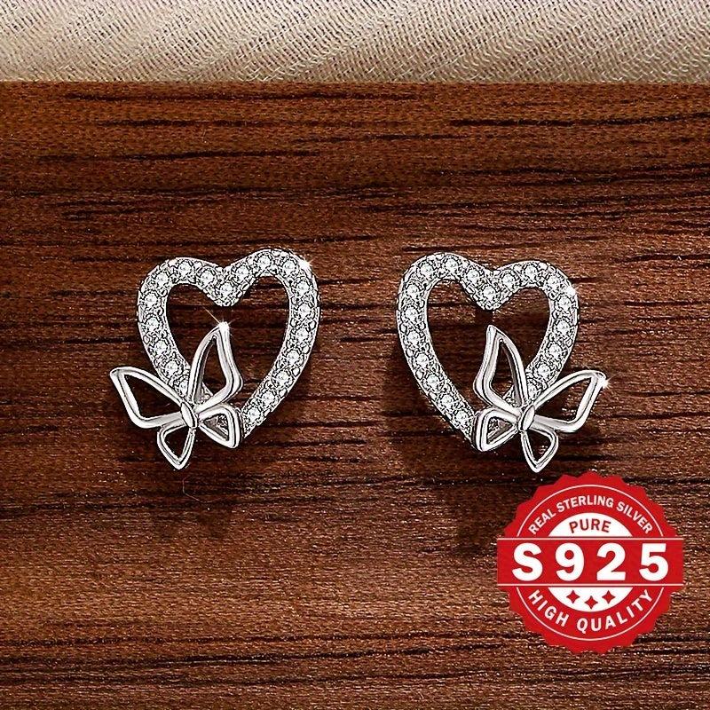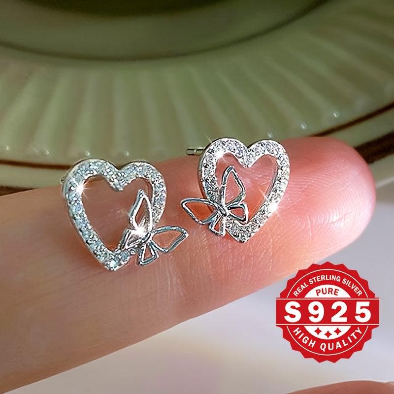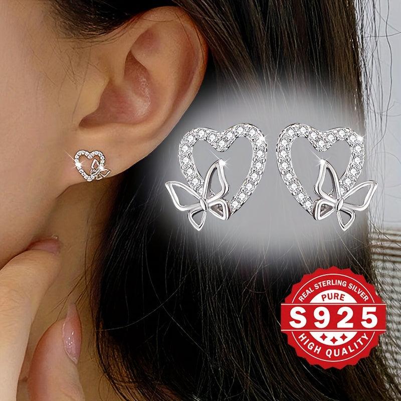 These women's butterfly earrings are made of S925 silver with artificial zirconia inlay, compact and minimalist design. They are lightweight, hypoallergenic, and perfect for any occasion.