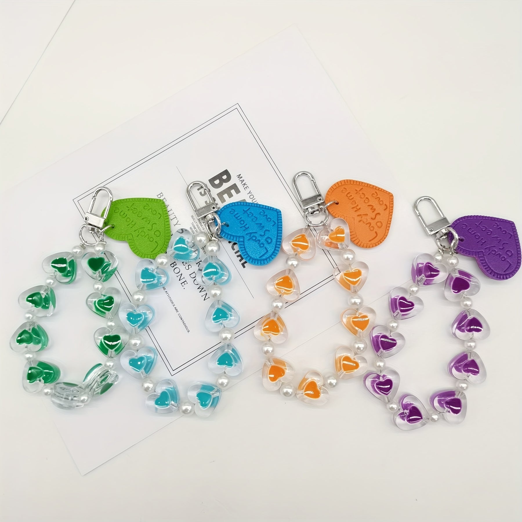 Add a touch of love to your school bag or keys with this cute heart-shaped hand string key chain pendant. Made of high-quality leather with intricate letter details, this accessory is perfect for expressing your affection.