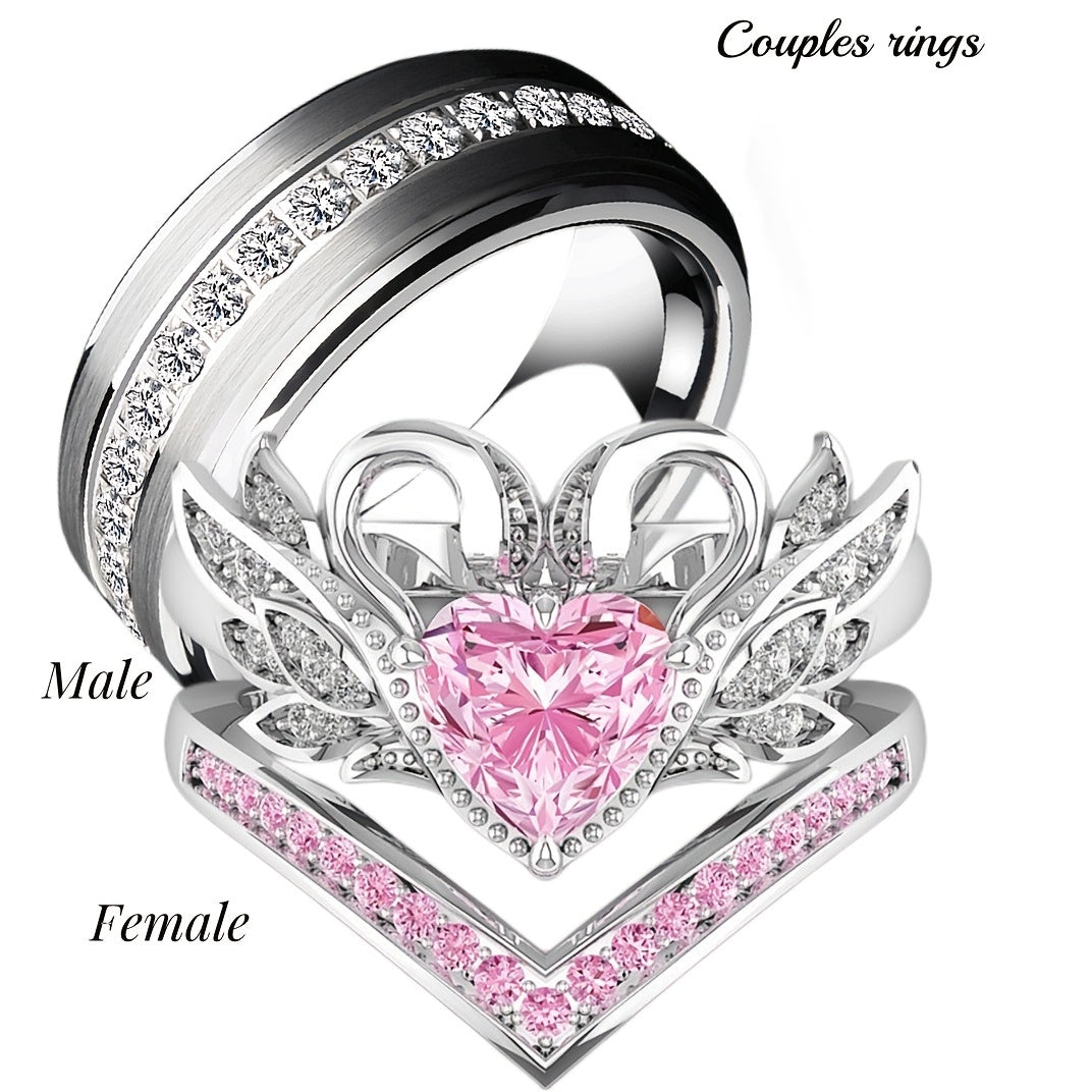 This stylish couple ring features a love heart design with sparkling zircon stones. Made of durable stainless steel, it's perfect for weddings or everyday wear.