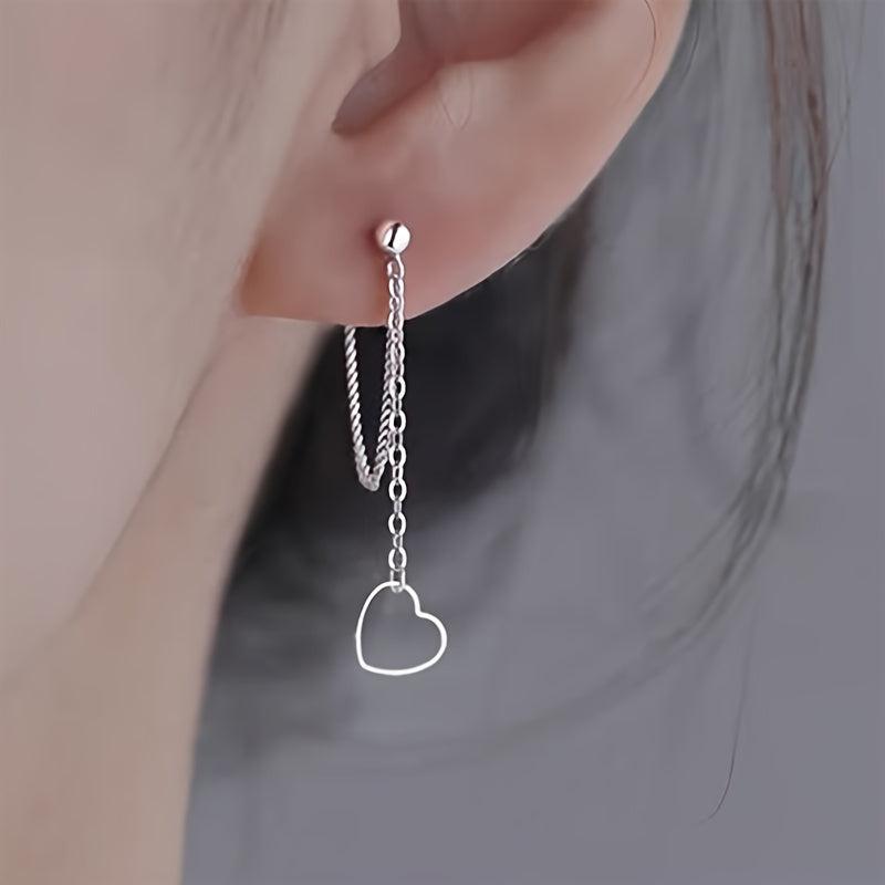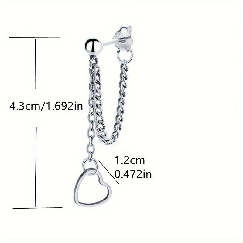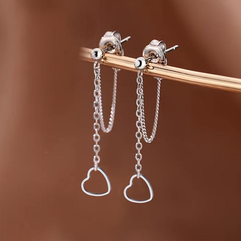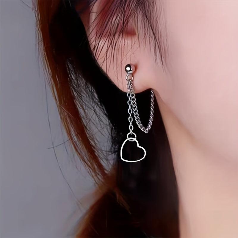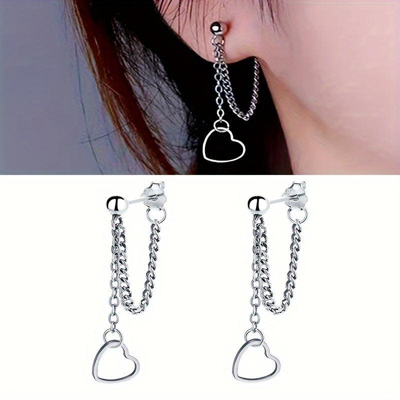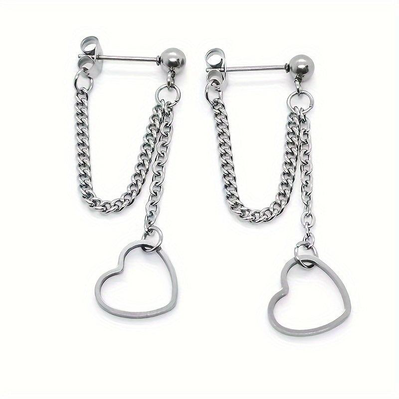 Chic and stylish pair of stainless steel stud earrings featuring tassel hollow love pendants. Perfect for women who love a unique and trendy accessory.
