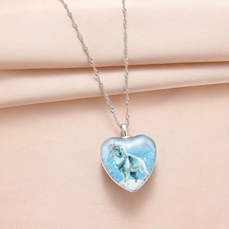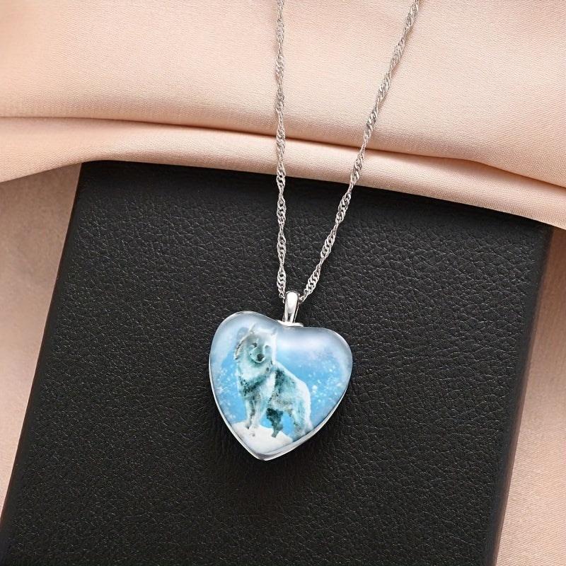 This wolf pendant necklace is a unique piece of men's jewelry that features a love-shaped design. It is made with high-quality materials and makes a great gift for any occasion.
