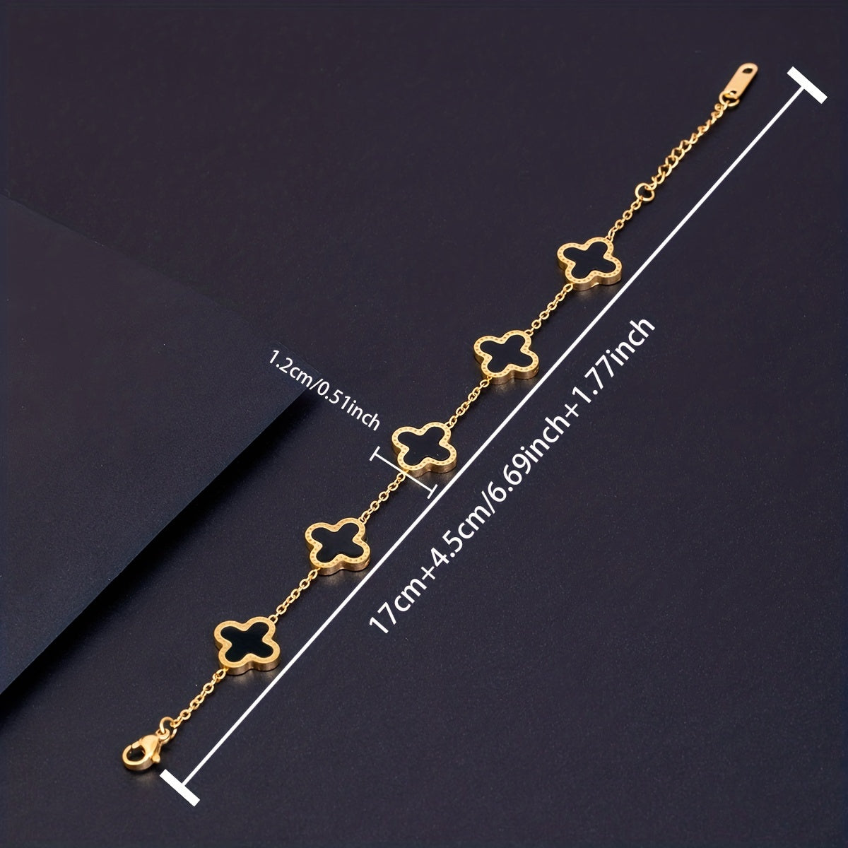 Add a touch of boho chic to your look with this beautiful lucky clover flower pendant necklace. Made of golden stainless steel with an adjustable chain length, this hand jewelry accessory is the perfect gift for her.