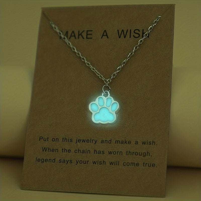 This stylish necklace features a luminous dog paw pendant, perfect for pet lovers. It glows in the dark and is a great accessory for women and girls.