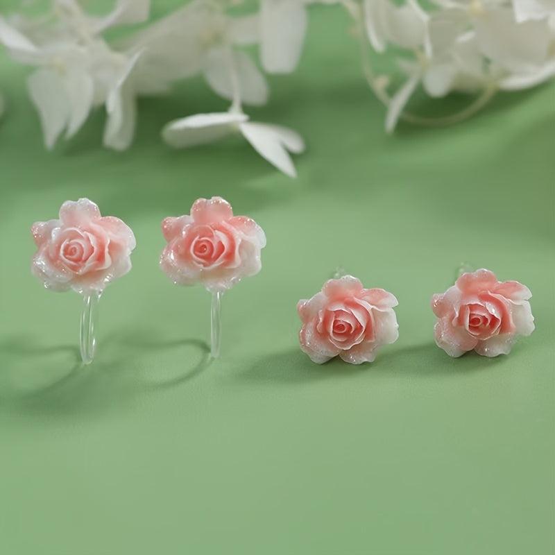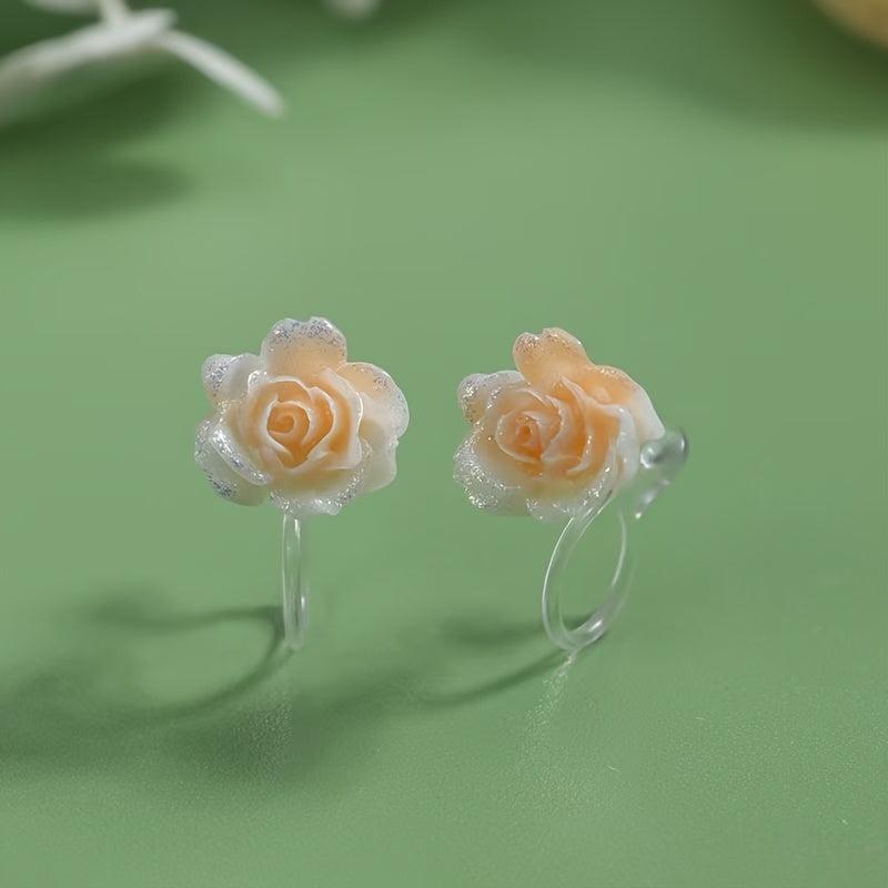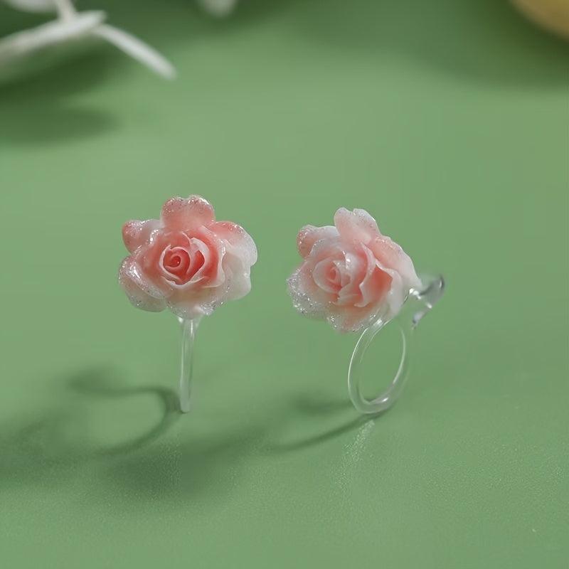 Beautiful and allergy-friendly ear clips featuring rose flower design. Perfect for daily wear.