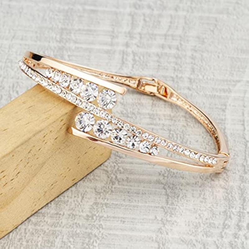 Elegant and stunning bracelet featuring brilliant AAA CZ stones. Rose plated for a luxurious look.