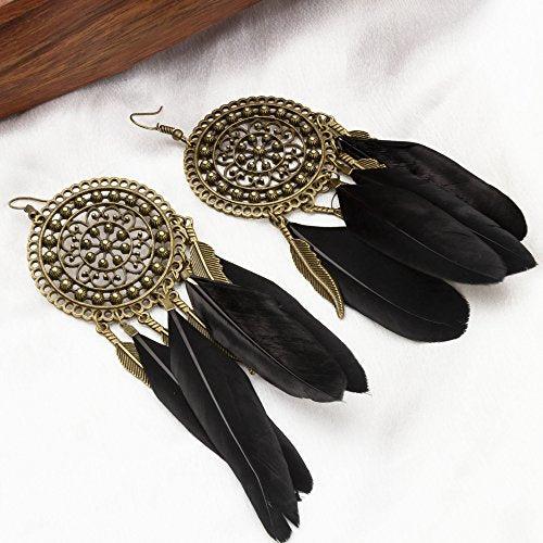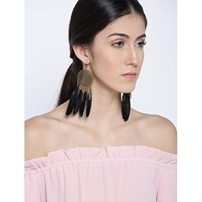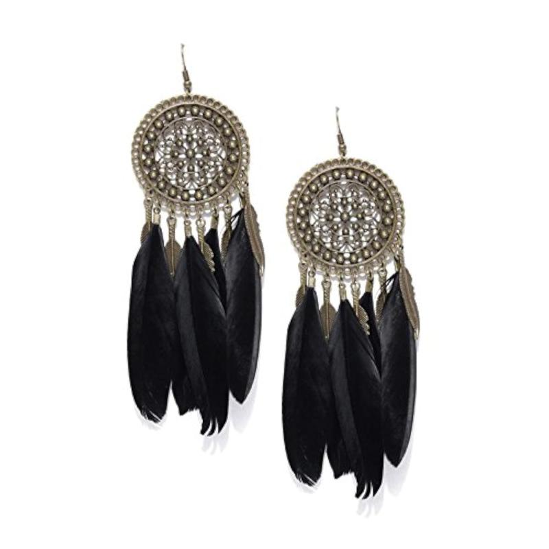 Enhance your look with these exquisite Luxuria earrings featuring antique feather design in oxidized silver finish.