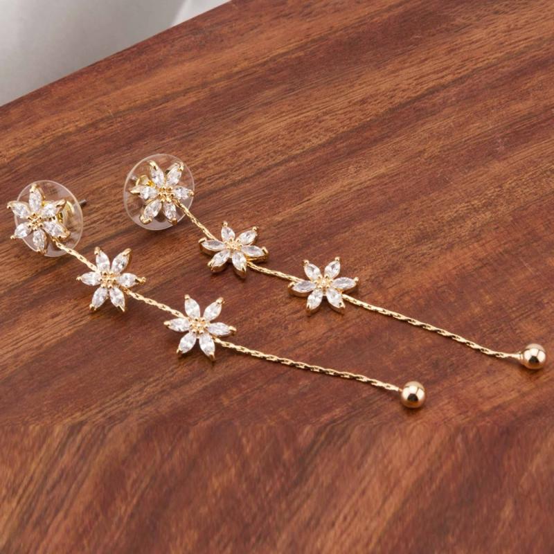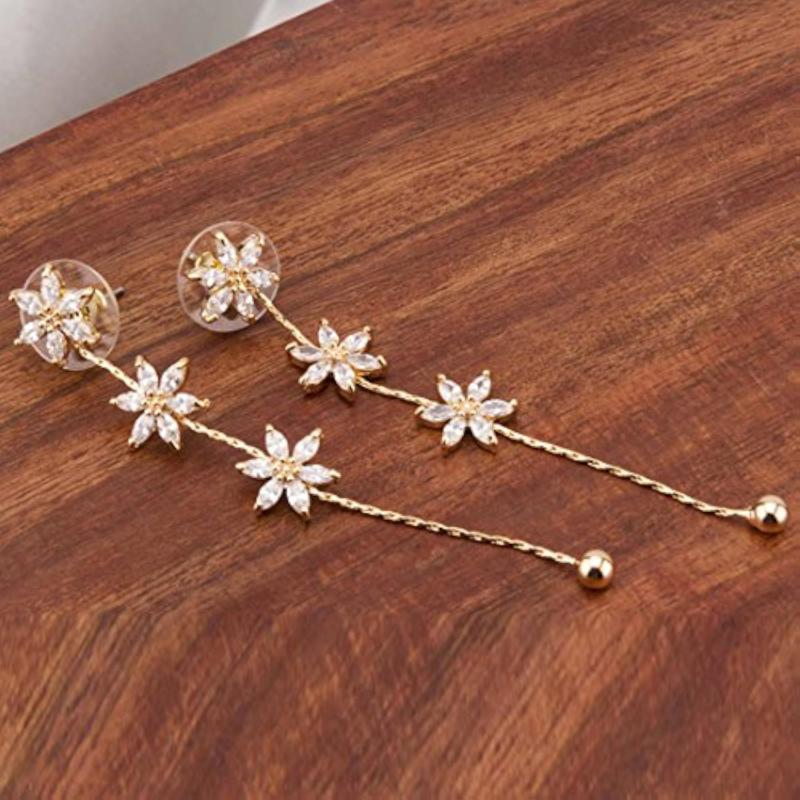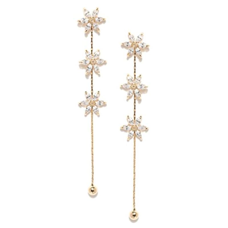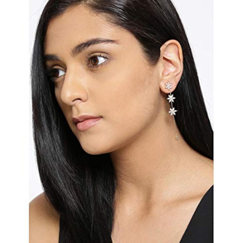 Adorn yourself with the exquisite Luxuria Delicate Florets AD Plated Chain Drop Earrings. These beautiful earrings are perfect for adding a touch of elegance to any outfit.
